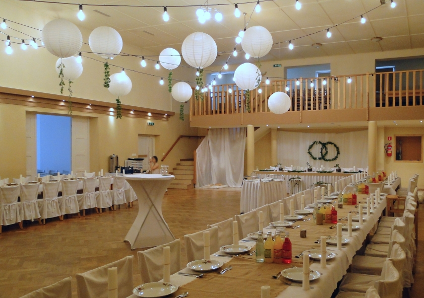 Oferujemy Państwu wynajen sali widowiskowej ( wraz z zapleczem ) na wesela, uroczystości rodzinne i inne imprezy okolicznościowe.