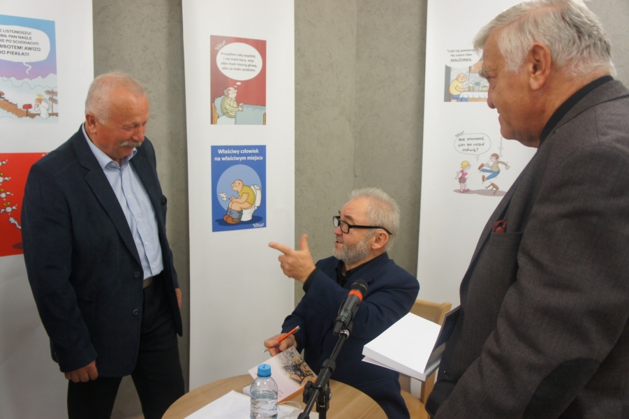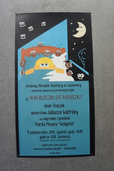 „Karaluszki do poduszki” to 48 książka w literackim dorobku Juliusza Wątroby. Najnowszy tomik składa się z 15 tematycznych rozdziałów i jest zbiorem wyśmienitych fraszek, w których autor wnikliwie opisuje otaczający nas świat. Te mini arcydzieła skrzą się dowcipem, ironią, grą słów i skojarzeń, ale też niosą nutę liryki i zadumy. Z tekstem świetnie korespondują zawarte w tomiku ilustracje, których autorem jest Marek Mosor „Widget”. Premierowa prezentacja książki odbyła się 4 października w galerii GOK Jasienica. Wydarzeniu towarzyszyła wystawa prac Marka Mosora „Widgeta” oraz minirecital Joanny Korpieli – Jatkowskiej. Wydawcą tomiku jest Gminny Ośrodek Kultury w Jasienicy.