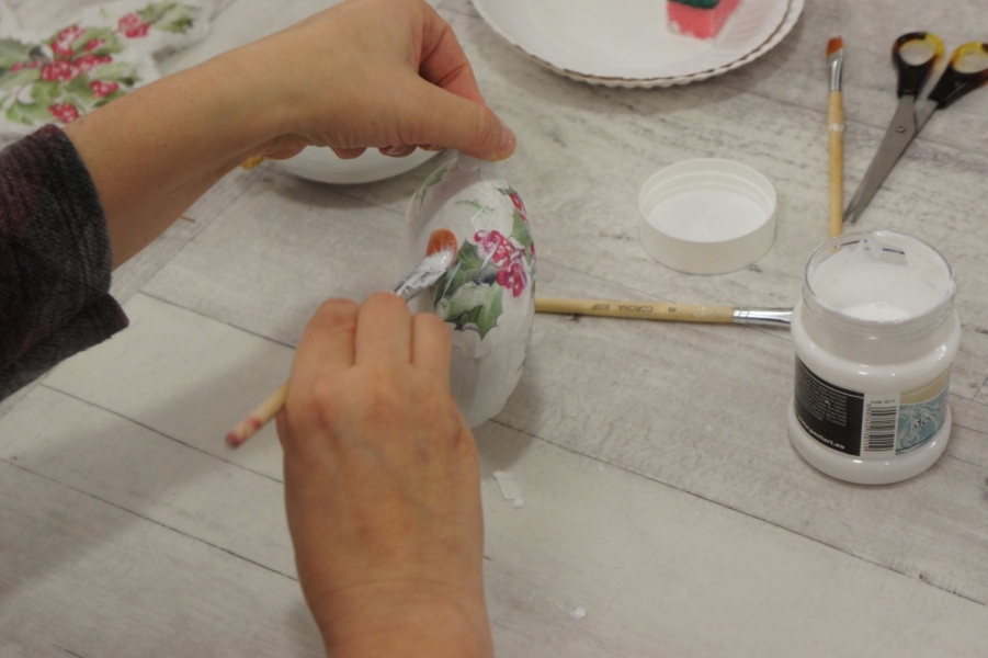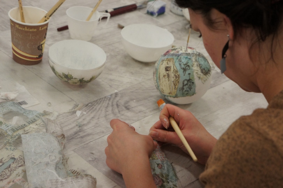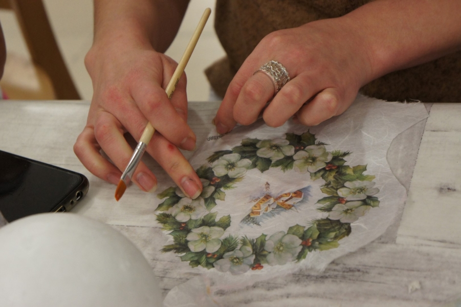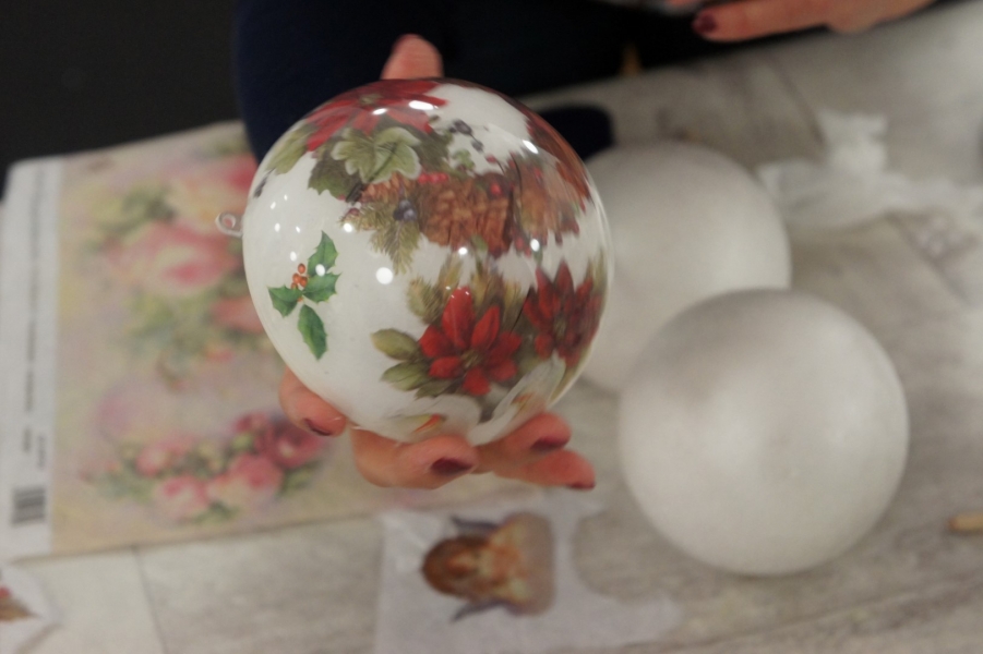 W Gminnym Ośrodku Kultury w Jasienicy odbyły się warsztaty decoupage "Bombki świąteczne". Podczas warsztatu uczestniczki zaprojektowały oraz wykonały dwie bombki, wykorzystując różne techniki zdobienia. Warsztaty prowadziła Justyna Wróbel - Mikołajczyk Pracownia Kreatywności.