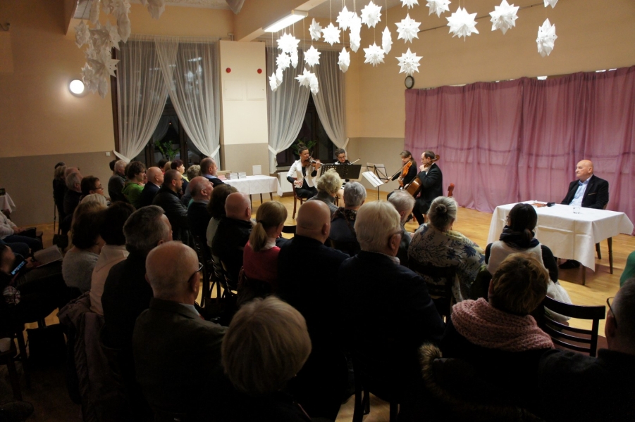 W piątek 28 lutego w filii GOK w Bierach odbyło się kolejne spotkanie dedykowane Józefowi Bożkowi pt. „Z Bier do Pragi czyli dlaczego Józef Bożek lubił knedle”. Wydarzenie miało miejsce dokładnie w 238 rocznicę urodzin genialnego konstruktora pochodzącego z Bier. Gościem specjalnym spotkania był znany dziennikarz i publicysta Leszek Mazan, który dowcipnie i z niesamowitą swadą snuł barwne opowieści. Ten niezrównany gawędziarz zabrał wszystkich zgromadzonych w niezwykłą podróż poprzez epoki, odwiedzając po drodze Pragę, Wiedeń, a nawet Kraków. Muzyczną ilustracją tych historycznych wojaży, były utwory J. Straussa, B. Smetany oraz A. Dworzaka, które perfekcyjnie wykonał kwartet smyczkowy „Gondek Kwartet” w składzie: Dominika Jurczuk Gondek (I skrzypce), Marta Kopszak (II skrzypce), Józefina Miodońska (altówka), Mariusz Dobrzaniecki (wiolonczela).