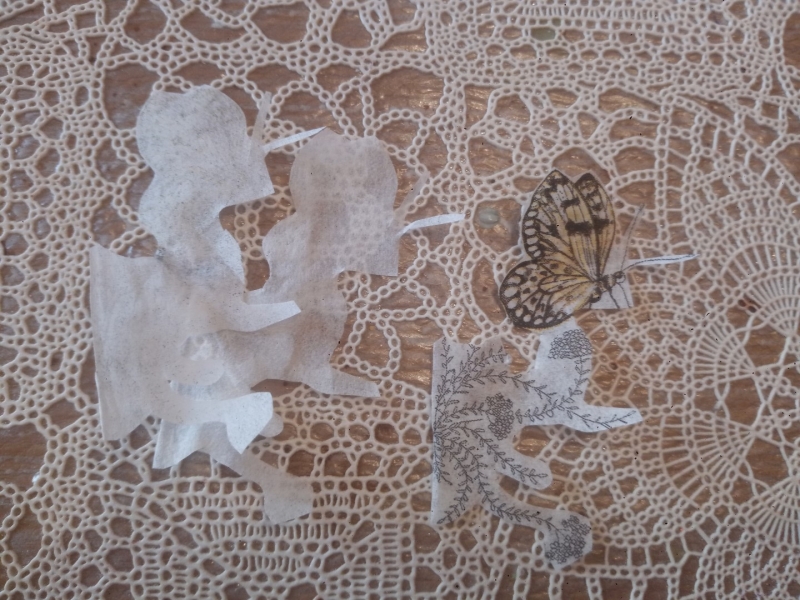 3. W tym czasie wybieramy ozdobny motyw z papierowej serwetki, staranie wycinamy i ostrożnie rozwarstwiamy serwetkę. Zazwyczaj są trzy warstwy – do dalszej pracy użyjemy tylko warstwę z motywem dekoracyjnym