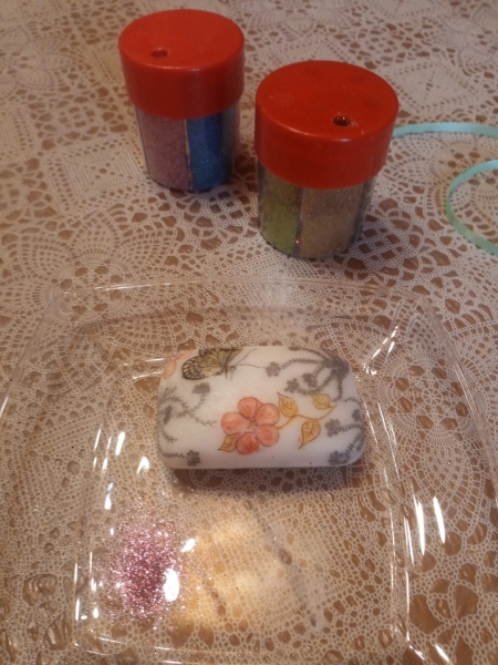 Dla lepszego efektu wizualnego, mydełko przed ostatnim lakierowaniem można delikatnie obsypać brokatem.