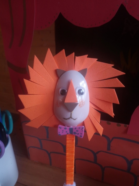 4. I teraz przeszedł czas na wykonanie kukiełek, które będą pełnić rolę aktorów w naszym teatrzyku. Tutaj też możemy zaszaleć do woli i stworzyć przepiękne postacie. Podpowiedź jak wykonać kukiełki znajdziecie na zdjęciach. W naszym teatrze na scenie wystąpią: przesympatyczny Lew Tadek, pani słonica Wanda i zapominalska żyrafa Klara. Oczywiście możecie rozbudować zespół aktorski i do obsady zaprosić np. małpkę, nosorożca czy zebrę.