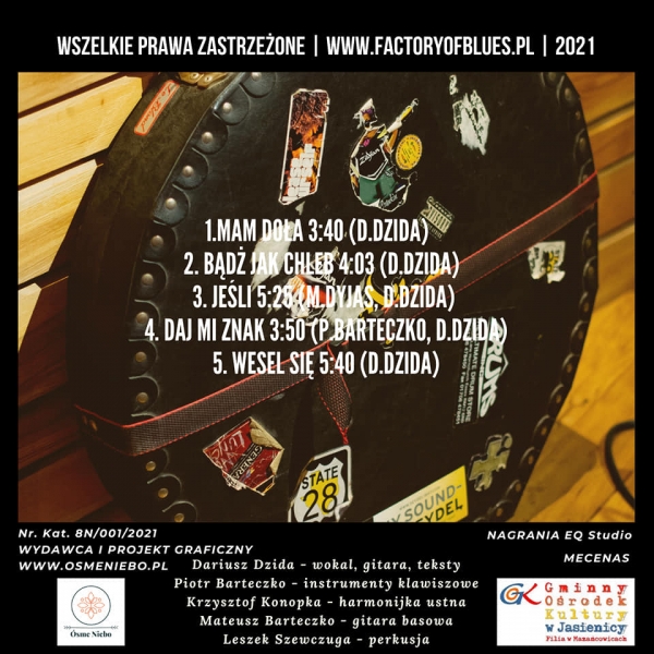 Niezwykle nam miło, że możemy wesprzeć bardzo zdolnych muzyków w ich artystycznych działaniach. Zapraszamy do śledzenia wydarzeń na profilu zespołu Factory of Blues oraz gorąco namawiamy do zakupu płyty/cegiełki w cenie 20 zł. Mecenas: Gminny Ośrodek Kultury w Jasienicy