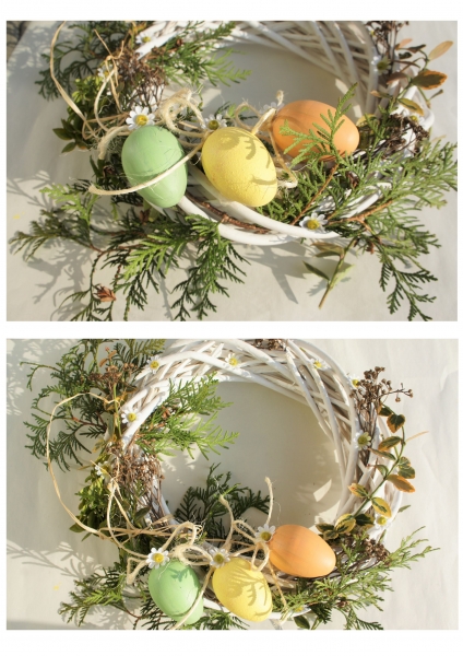 · Gotowy wianek można położyć na stole czy komodzie w przedpokoju lub dowiązać do niego sznurek jutowy i zawiesić na drzwiach czy w oknie.
