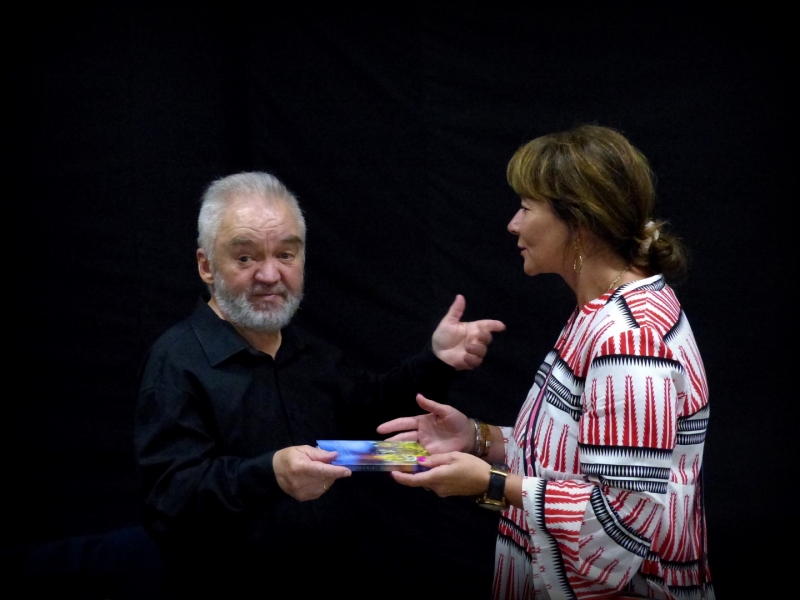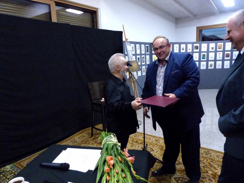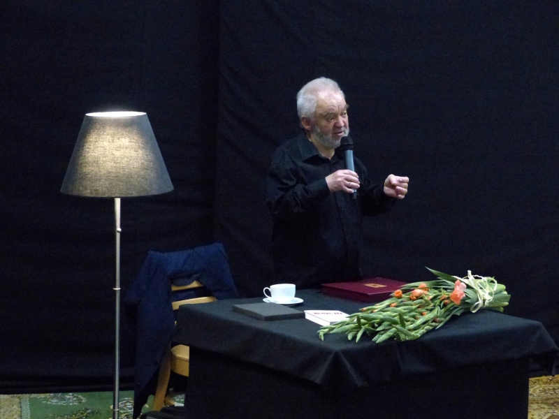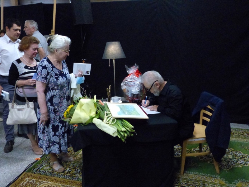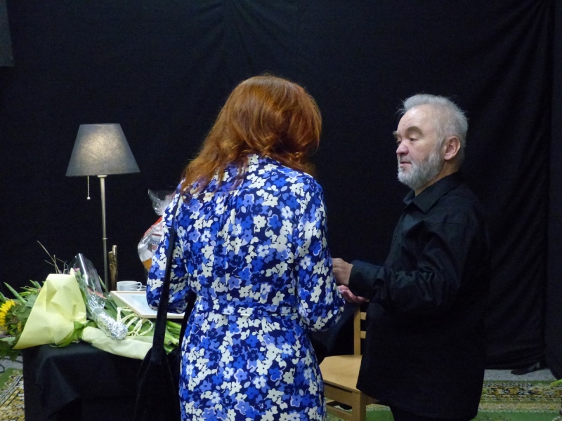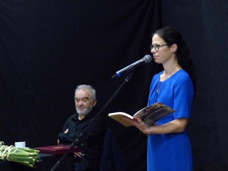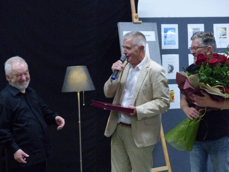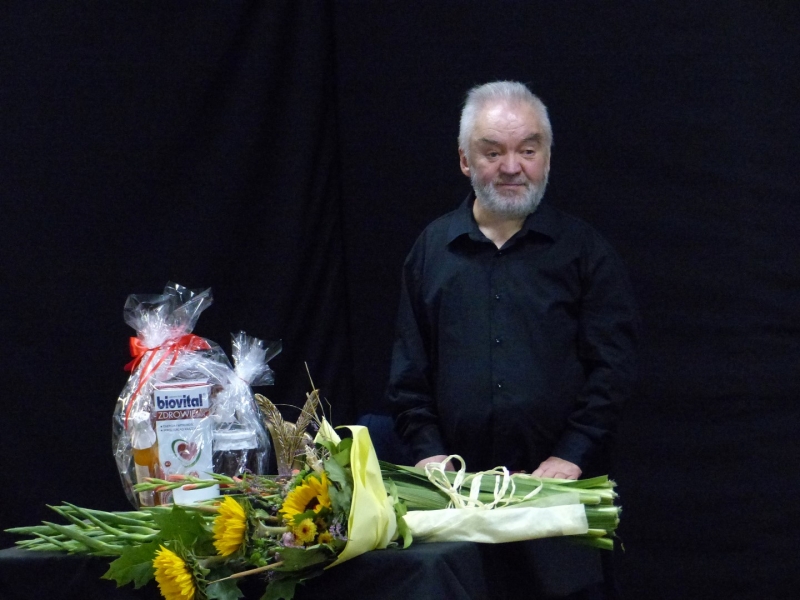 I była to przepiękna eskapada przez pięćdziesiąt lat pracy twórczej Juliusza Wątroby. A było co wspominać… w końcu bohater wieczoru jest poetą, prozaikiem, satyrykiem, felietonistą, autorem tekstów piosenek, kabareciarzem i w każdej z tych dziedzin jest Mistrzem. Było trochę sentymentalnie, odrobinę lirycznie i jak zawsze z dużą dozą humoru. Zatrzymywaliśmy się również na muzycznych przystankach, by posłuchać piosenek w genialnej interpretacji Joanny Korpieli-Jatkowskiej. Za oknami naszego pociągu przewijały się piękne obrazy Krzysztofa Czadera. Jak każda podróż i ta musiała kiedyś się zakończyć…. na końcowej stacji czekały kwiaty, gratulacje, prezenty, a z megafonów rozległo się gromkie 100 lat ;)