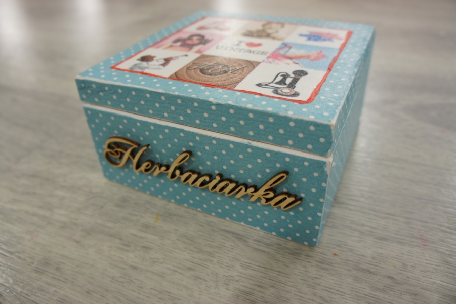 Najlepszy zestaw na długie, jesienne wieczory to kocyk, książka i kubek aromatycznej herbaty. A gdzie najlepiej trzymać herbaciane torebki? Oczywiście w zdobionym, drewnianym pudełku. I takie piękne pudełka powstały na warsztatach decoupage mix media w stylu "RETRO PIN UP". Warsztaty odbyły się w GOK Jasienica, a zajęcia prowadziła Marcelina Dziedzic.