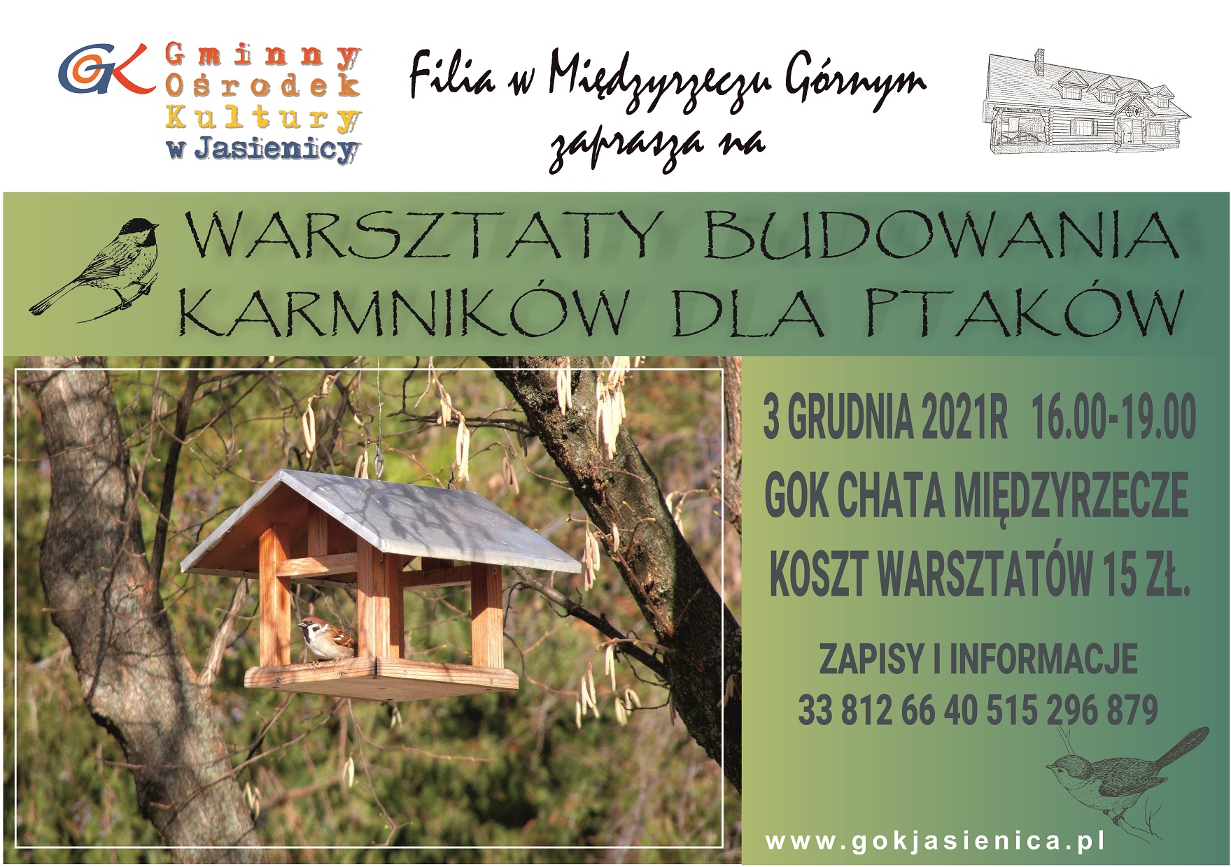 Zapraszamy na warsztaty stolarskie, podczas których samodzielnie zbudujemy karmnik dla ptaków. W trakcie zajęć dowiemy się również, czy należy dokarmiać ptaki, czym je karmić oraz jakie są zwyczaje i potrzeby ptaków zimujących w Polsce. Warsztaty poprowadzi Jarosław Kasprzyk „Klub Gaja”.