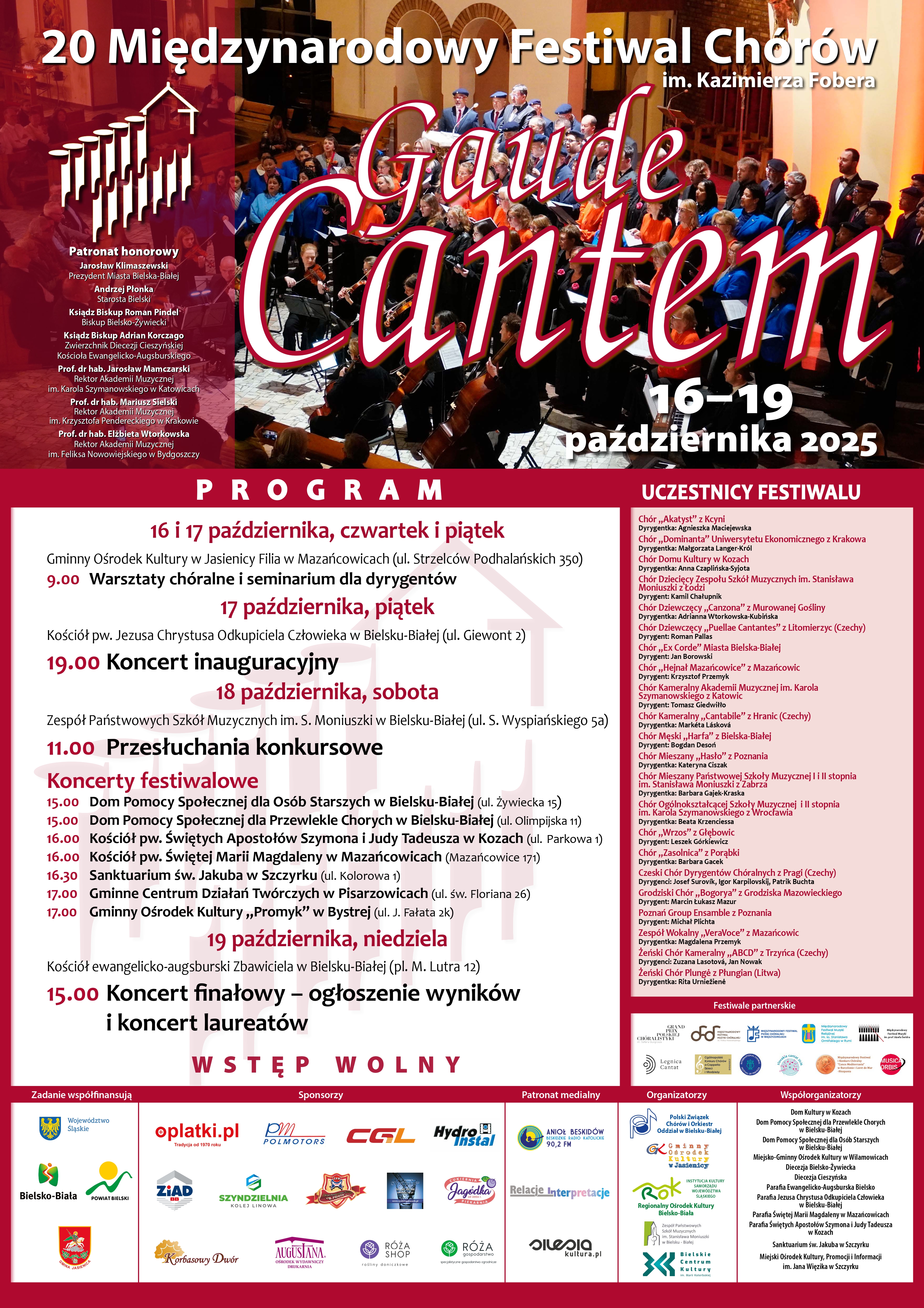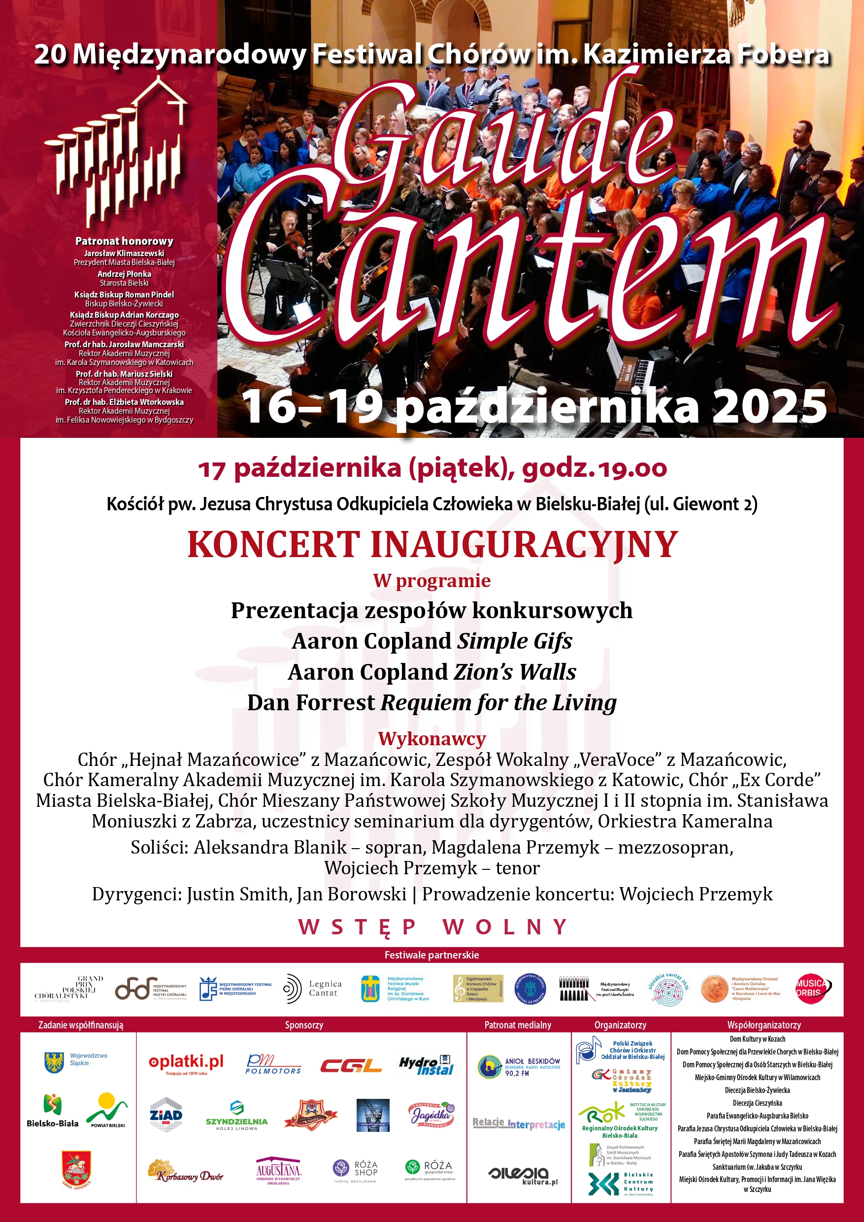 Koncert inauguracyjny Festiwalu (z udziałem Chóru Hejnał Mazańcowice oraz Zespołu Wokalnego VeraVoce z Mazańcowic, działających przy filli GOK w Mazańcowicach) odbędzie się 17 października (piątek) 2025 r. o godz. 19.00 w kościele pw. Jezusa Chrystusa Odkupiciela Człowieka w Bielsku-Białej (ul. Giewont 2). Wstęp wolny