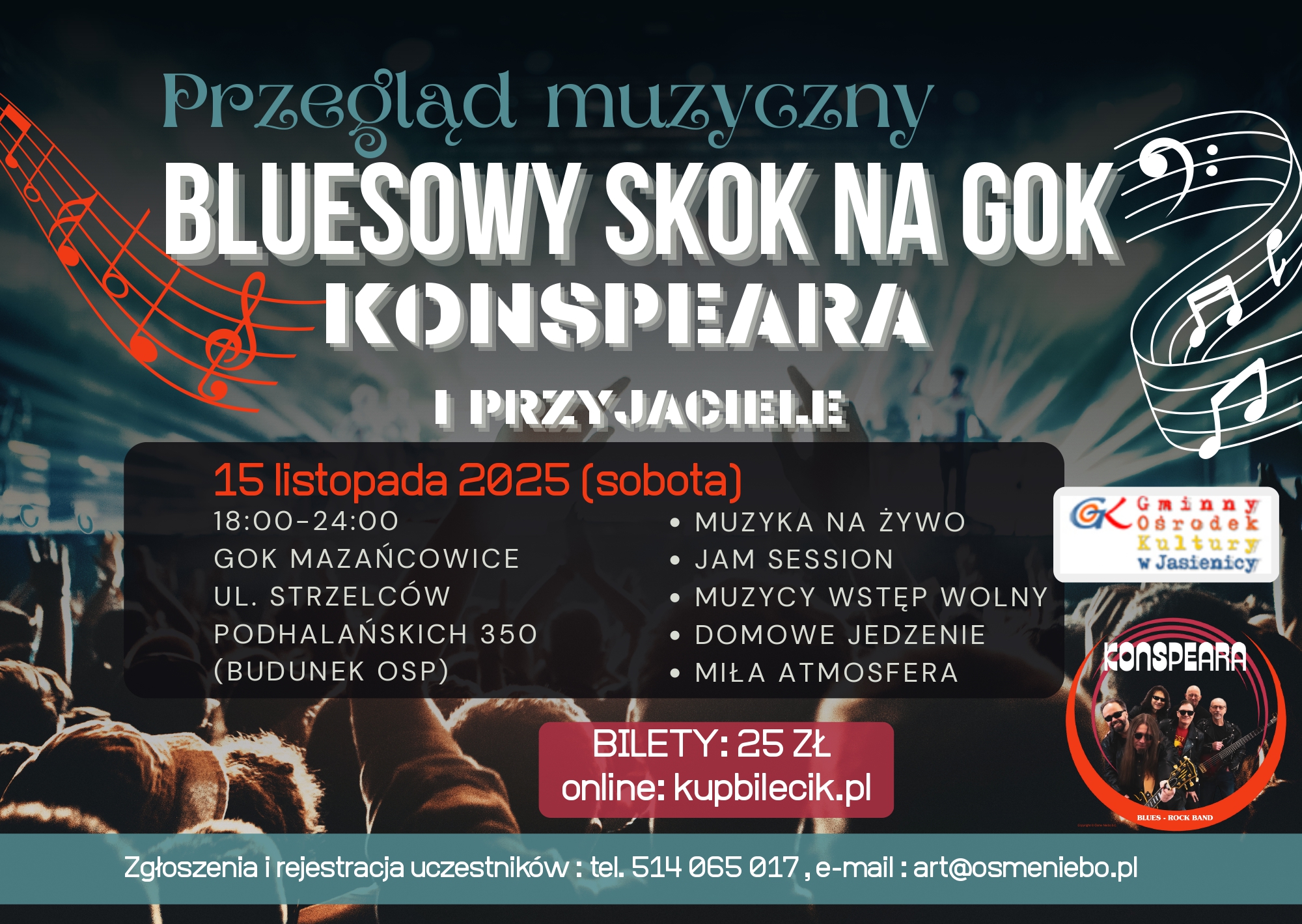 Serdecznie zapraszamy do Mazańcowic na przegląd muzyczny „Bluesowy skok na GOK”.
