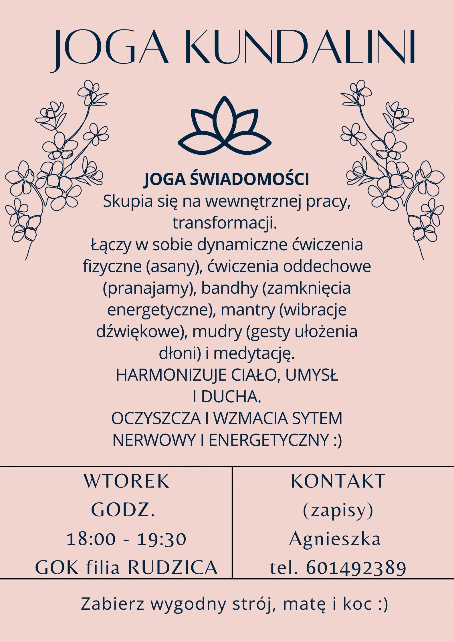 Filia GOK w Rudzicy zaprasza na zajęcia „JOGA KUNDALINI”.