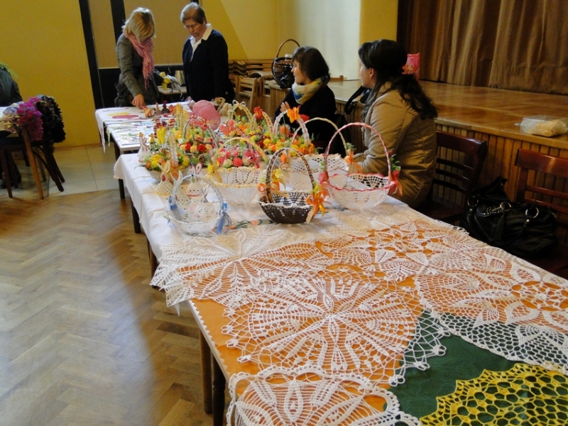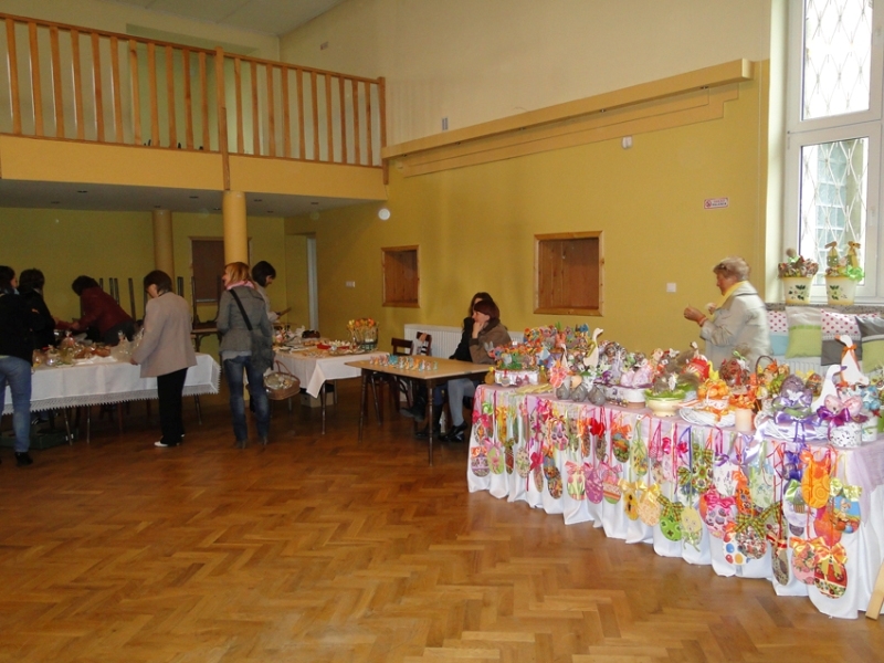 Za nami kolejny Jarmark Wielkanocny, na którym mieli okazję zaprezentować się miejscowi twórcy .W okresie przedświątecznym staramy się promować naszych lokalnych artystów, którzy zajmują się m.in. rzeźbą, szydełkowaniem, haftowaniem, szyciem, decoupage oraz wszelkim rękodziełem. Jest to okazja do kupienia drobnych upominków dla najbliższych i dekoracji świątecznych do domu, albo chociażby zobaczenia pięknych wyrobów. Oczywiście oprócz nacieszenia oka można było zaopatrzyć się w świąteczne baranki, zajączki, babeczki oraz mazurki domowej roboty.