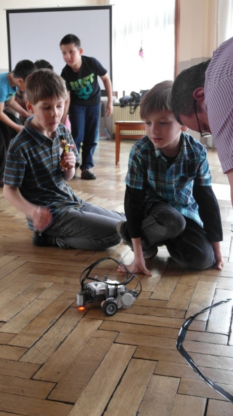 Wykorzystując zestawy konstrukcyjne LEGO MINDSTORMS, zawierające mikrokomputer, precyzyjne silniki oraz różne typy sensorów, uczestnicy warsztatów skonstruowali i przetestowali swoje roboty.