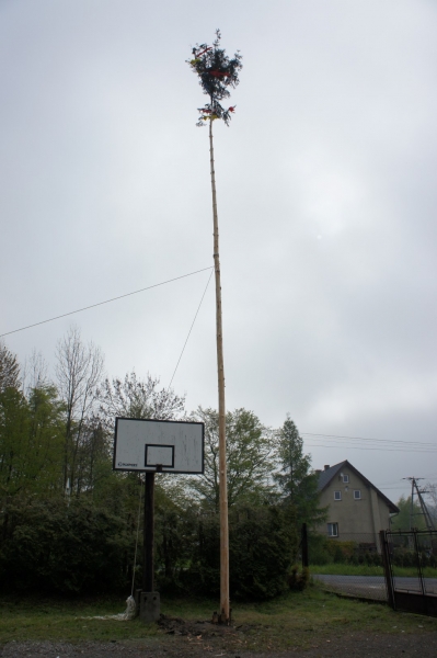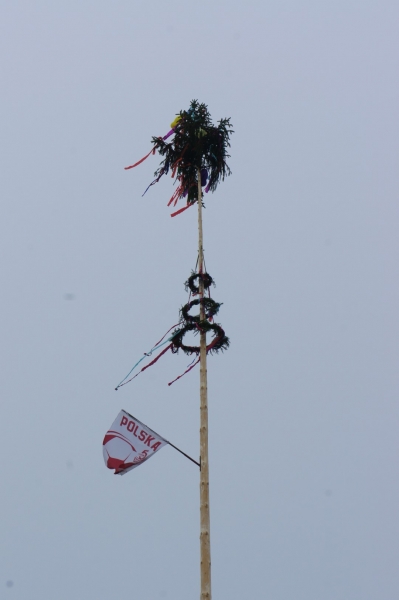 II miejsce – dla moja zgłoszonego przez Roztropice: mój smukły, wysoki, stabilnie zamocowany (wkopany w ziemię + odciąg linowy), wierzchołek ozdobiony