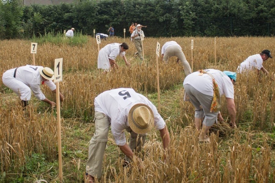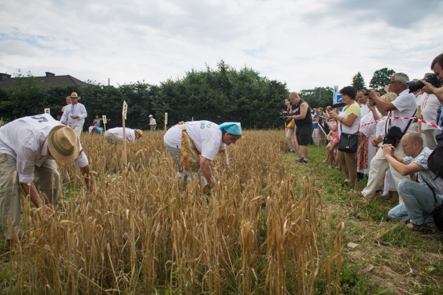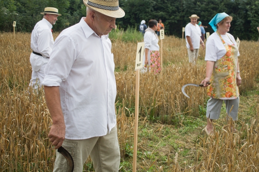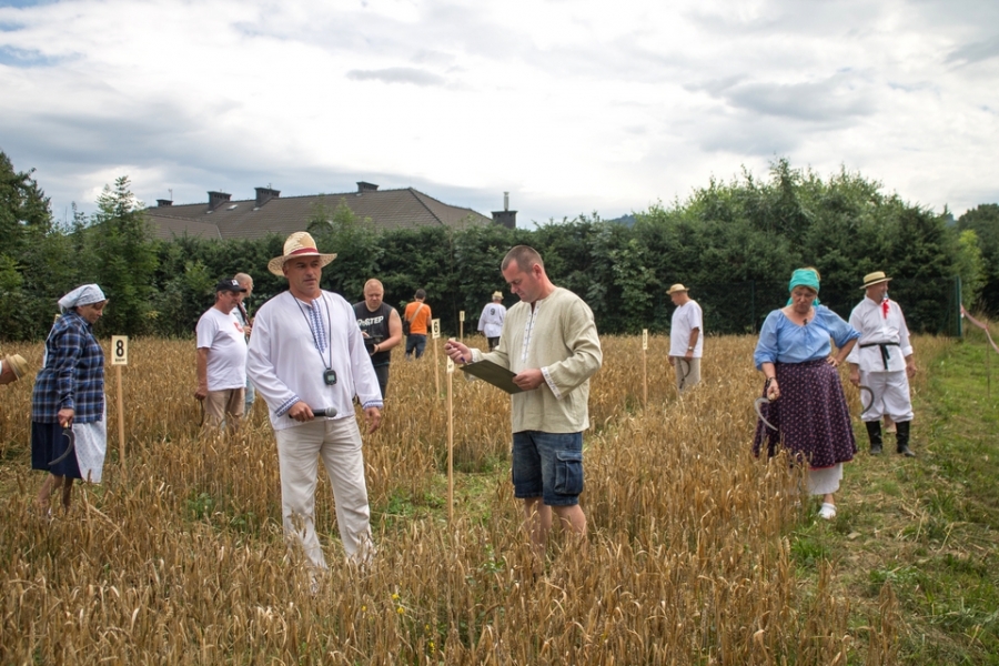 Jedna osoba kosiła zboże na wcześniej wylosowanym poletku, wiązała je w snopki i ustawiała kopki.
