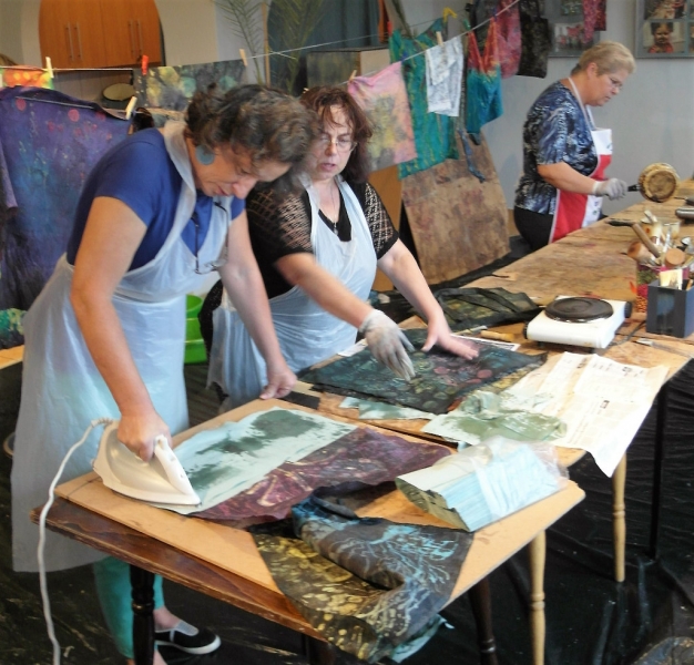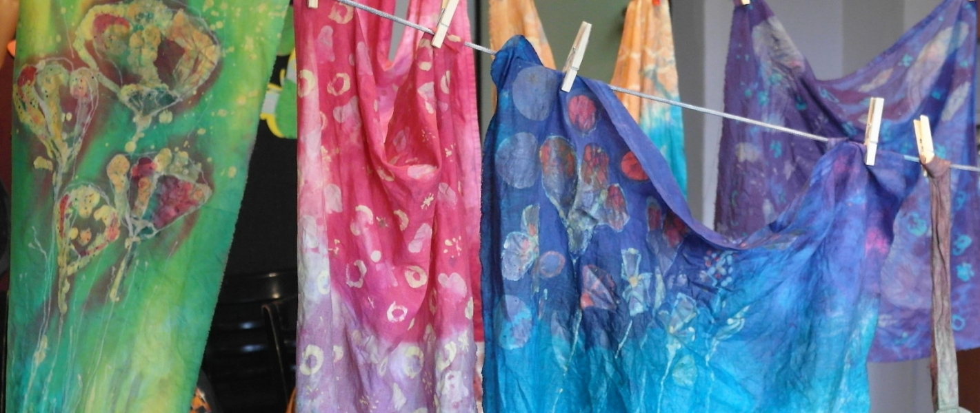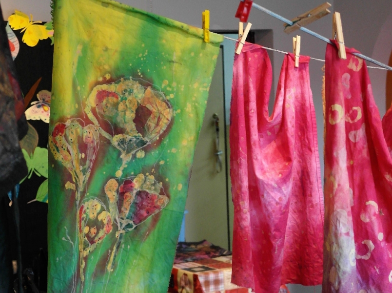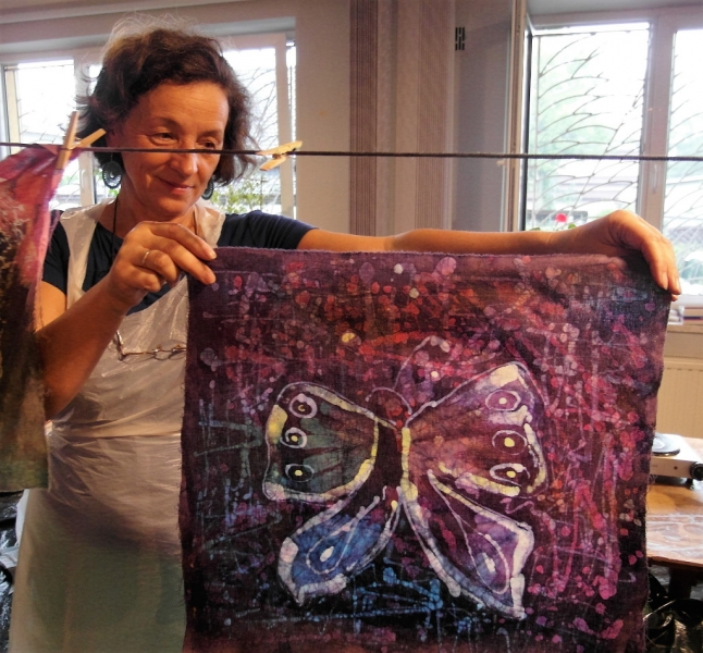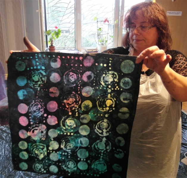 W filii GOK w Bierach odbyły się dwudniowe warsztaty batiku. Batik to technika malarska polegająca na kolejnym nakładaniu wosku i kąpieli tkaniny w barwniku, który farbuje jedynie miejsca nie zamaskowane warstwą wosku. Dla uzyskania specjalnych efektów proces woskowania i farbowania można powtarzać wielokrotnie. Po wykonaniu projektowanego wzoru tkaninę prasuje się przez biały papier. Batik to technika wykonywana od wielu pokoleń, najbardziej popularna w Indonezji i innych krajach Azji. Pod okiem instruktora Pani Katarzyny Brody – Firla, uczestniczki zajęć rozwijały swoje talenty malarskie, ucząc się krok po kroku tej techniki. W pierwszym etapie panie wykonały barwne torebki, a następnie na większych formatach malowały obrazy. Końcowy efekt pracy miło zaskoczył nasze uczestniczki. Powstały bardzo piękne prace, które można obejrzeć na załączonej relacji fotograficznej. Dziękujemy za udział i zaangażowanie oraz zapraszamy na kolejne warsztaty artystyczne w naszej filii.