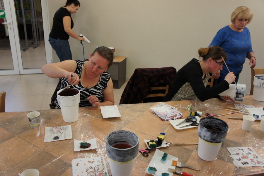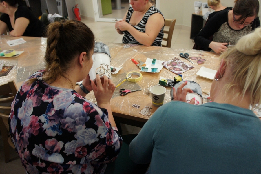 W Gminnym Ośrodku Kultury w Jasienicy odbyły się wiosenne warsztaty decoupage. Tym razem tematyką zajęć był styl retro czyli staromodny szyk. Podczas warsztatów panie poznały nową technikę tzw. transferu, która polega na przenoszeniu wydruku laserowego za pomocą specjalnego preparatu na zdobione przedmioty. Dzięki tej technice, prace zyskały oryginalną, niepowtarzalną ornamentację.