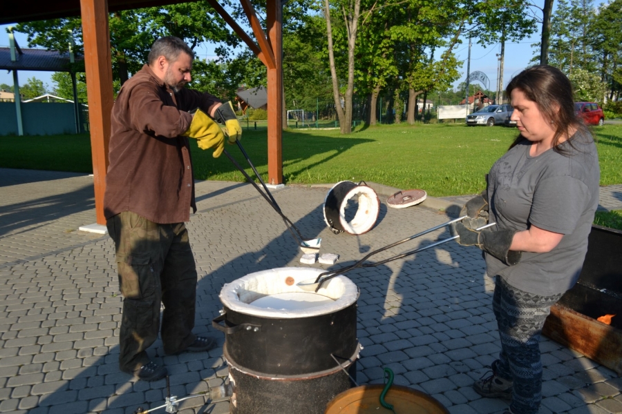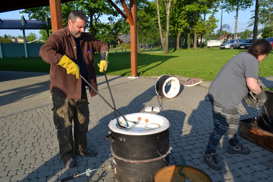 „NOC Z CERAMIKĄ” – pod taką nazwą w nocy z 26 na 27 maja, jasienicki GOK zorganizował III edycję działań warsztatowych skupionych wokół rzeźby w glinie, technik ceramicznych z użyciem szelaku oraz wypału w technice raku. Tematyka prac była różnorodna – od elementów biżuteryjnych, przez kafle z dekorami po naczynia użytkowe. W czasie ośmiogodzinnych zajęć, uczestnicy mieli okazję poznać wiele technik wylepiania w glinie oraz uczestniczyć w bardzo ciekawym i widowiskowym wypale ceramiki w starojapońskiej technice raku. III edycja „Nocy z Ceramiką” spotkała się z dużym zainteresowaniem i z pewnością będzie kontynuowana w kolejnych latach. Zajęcia warsztatowe prowadziła Edyta Malcer i Agnieszka Loska.