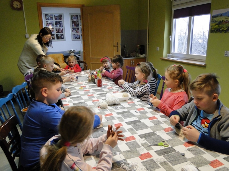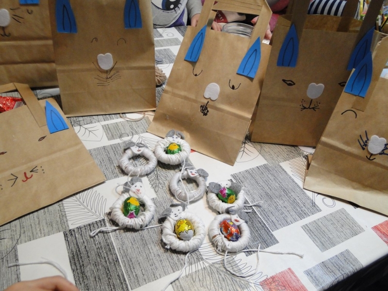 Dzieci uczestniczące w warsztatach mogły dowiedzieć się o zwyczajach wielkanocnych, wysłuchać opowiadania oraz wierszy związanych z Wielkanocą. Podczas zajęć plastycznych powstawały piękne baranki oraz ozdobne torebeczki "zajączki".