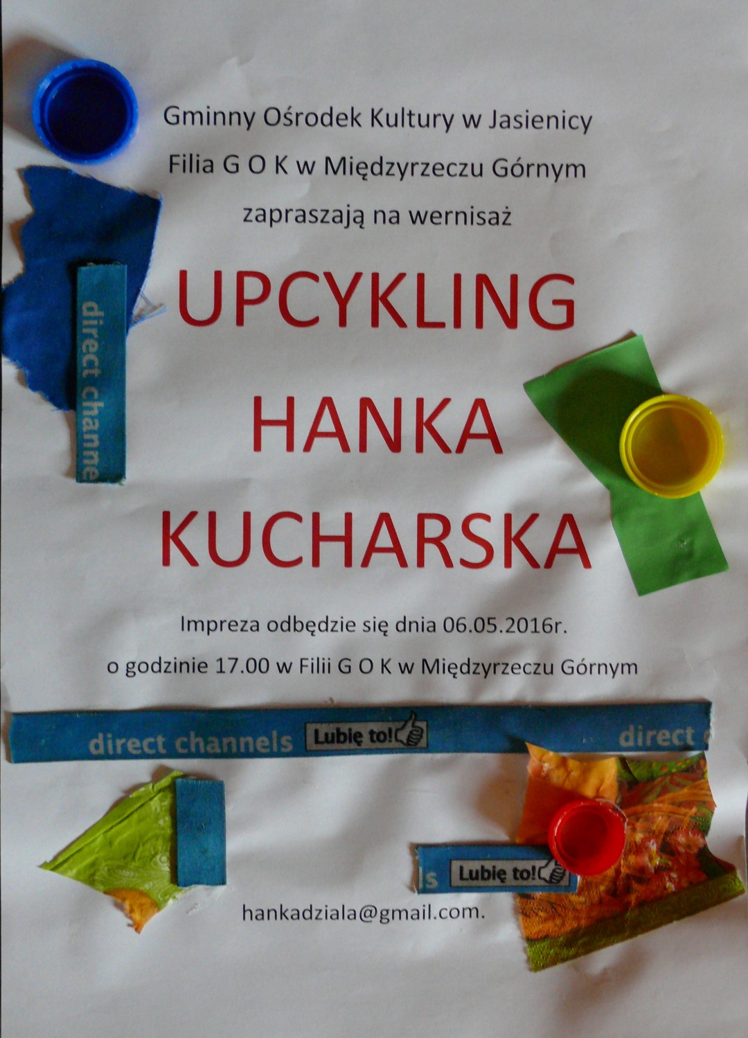 Zapraszamy 6 maja do filii GOK w Międzyrzeczu Górnym na wernisaż wystawy "UPCYKLING".