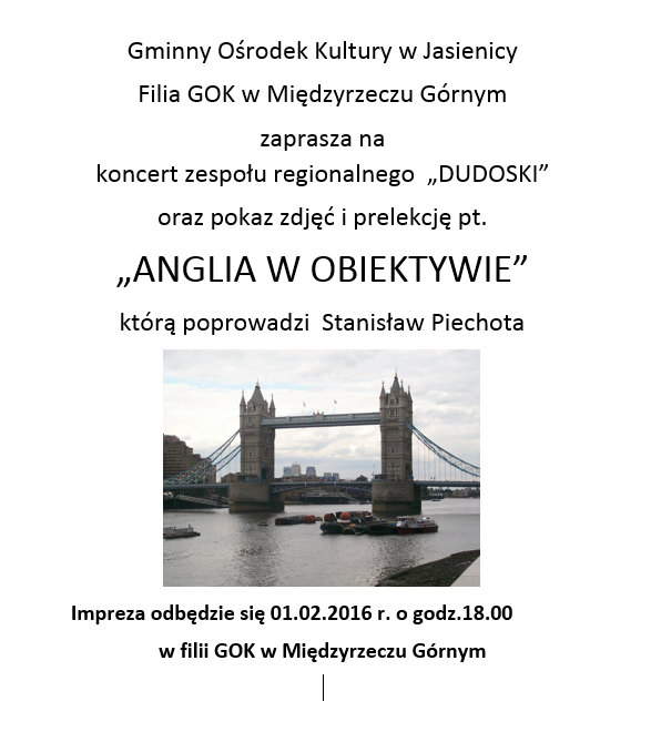 Zapraszamy do filii GOK w Międzyrzeczu Górnym na pokaz zdjęć i koncert.