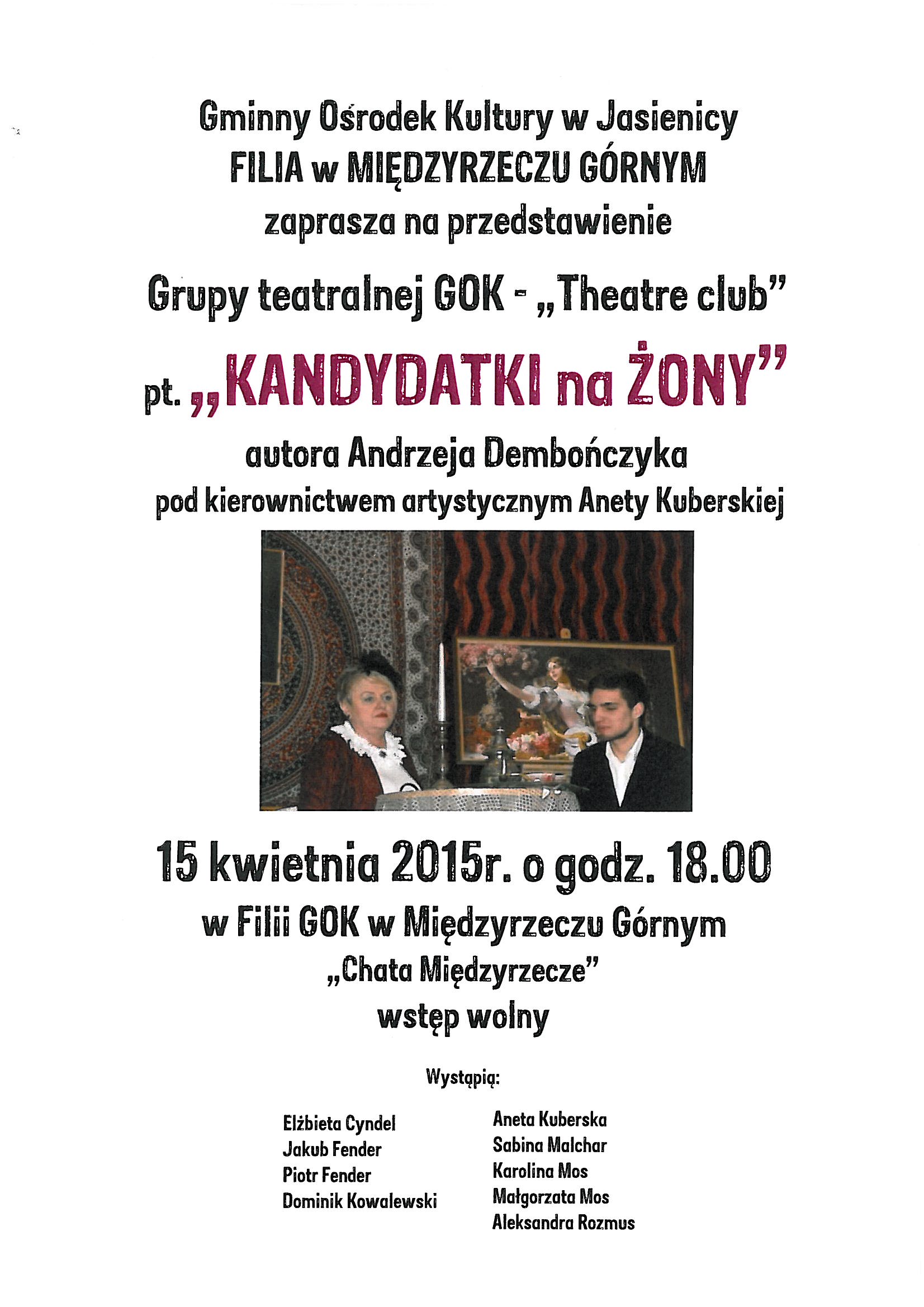 Filia GOK w Międzyrzeczu Górnym zaprasza na przedstawienie pt. "Kandydatki na żony".