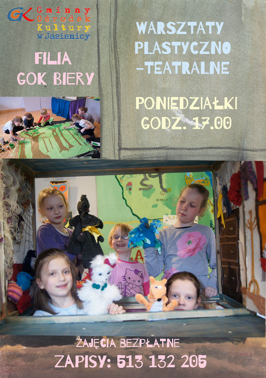 W poniedziałki zapraszamy do filii GOK w Bierach na warsztaty plastyczno - teatralne.