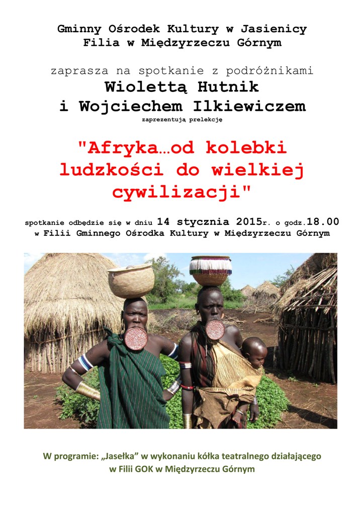 Zapraszamy do filii GOK w Międzyrzeczu Górnym na spotkanie podróżnicze pt. "Afryka... od kolebki ludzkości do wielkiej cywilizacji".
