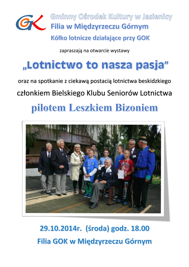 Zapraszamy do filii GOK w Międzyrzeczu Górnym na otwarcie wystawy "Lotnictwo to nasza pasja".