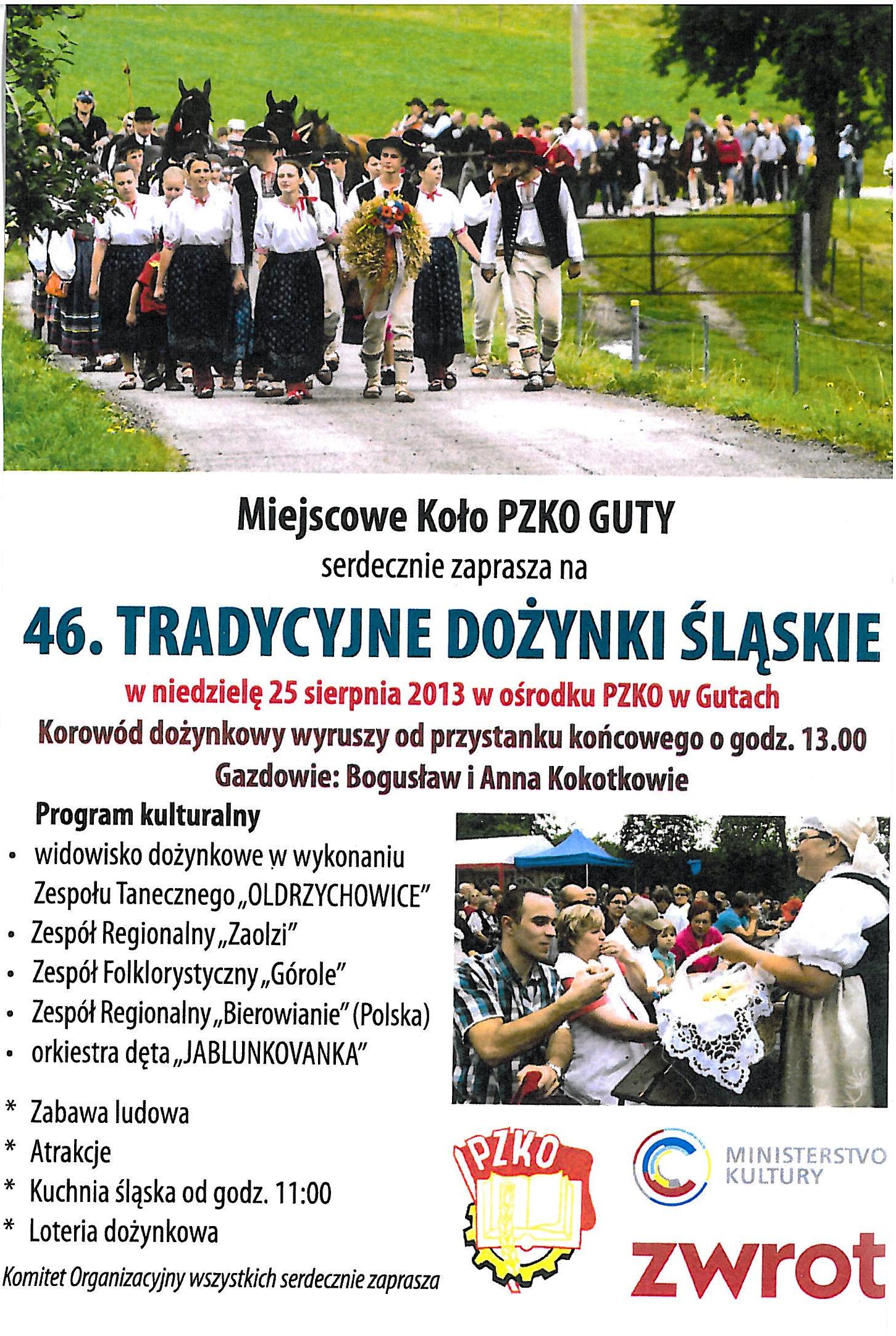 Miejscowe Koło PZKO Guty zaprasza na 46 Tradycyjne Dożynki Śląskie.