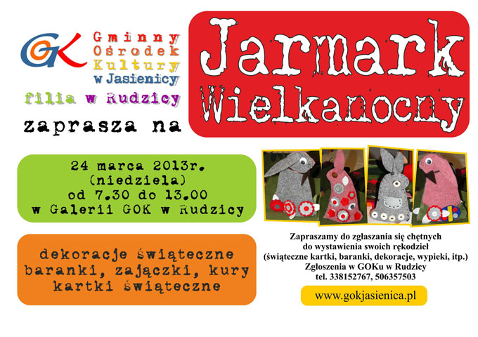 Zapraszamy 24 marca do filii GOK w Rudzicy na Jarmark Wielkanocny.