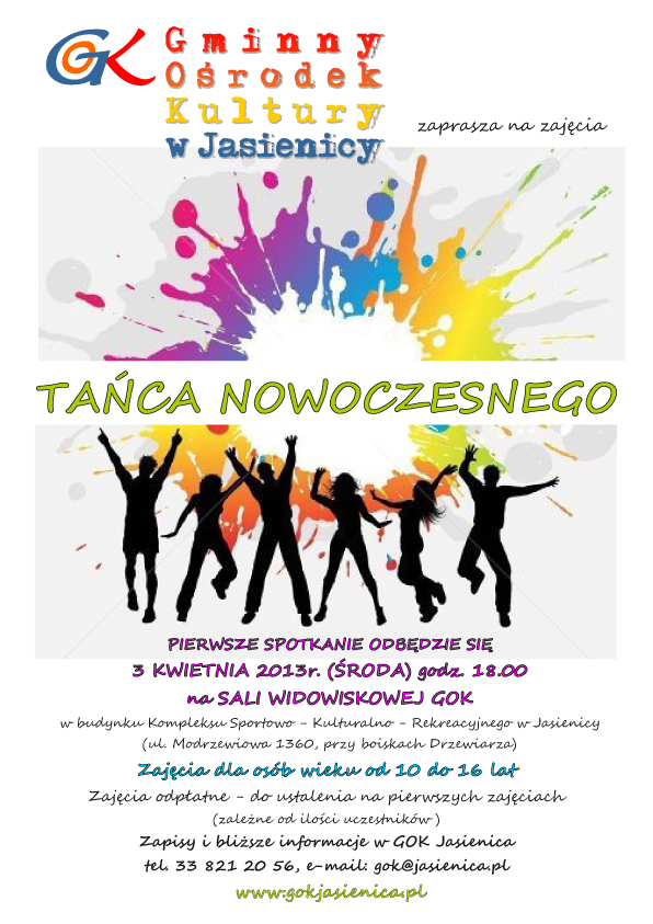 W siedzibie GOK Jasienica rozpoczynają się zajęcia tańca nowoczesnego.