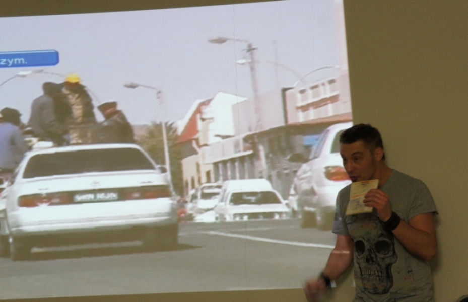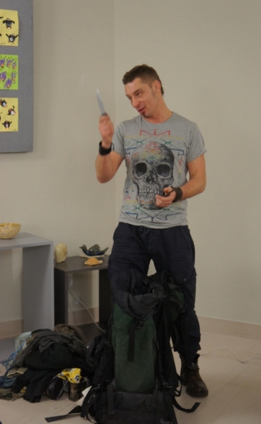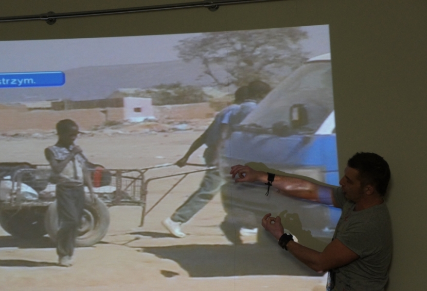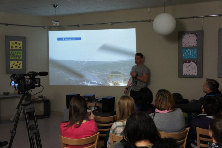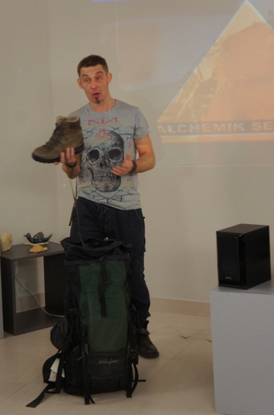 Porywające, żywiołowe, niebanalne… tak w skrócie można opisać spotkanie z podróżnikiem, artystą, poetą Arunem Milcarzem. Niezwykle barwna osobowość i ciekawe opowieści Aruna , zbudowały magiczną atmosferę wieczoru podróżniczego. Podczas ponad dwugodzinnego spotkania, licznie zebrana publiczność całkowicie wciągnęła się w wir opowieści o samotnej podróży przez Afrykę.
