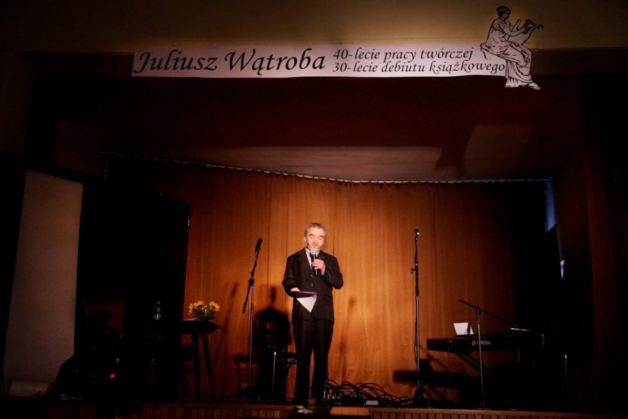 12 kwietnia w filii GOK w Rudzicy, odbył się benefis Juliusza Wątroby. Benefis został zorganizowany z okazji 40-lecia pracy twórczej literata i 30 rocznicy jego debiutu literackiego. Juliusz Wątroba jest twórcą wszechstronnie uzdolnionym - piszącym zarówno znakomite fraszki, wiersze liryczne i satyryczne, aforyzmy, jak i teksty pieśni oraz piosenek. Jest autorem programów kabaretowych, musicali i felietonów. Urodził się w 1954 roku w Rudzicy, gdzie mieszka i tworzy. Debiutował w tygodniku społeczno-kulturalnym RADAR, od 1977 do 1992 roku był stałym współpracownikiem SZPILEK, które opublikowały około 200 jego utworów. Jego wiersze ukazywały się w pismach literackich, satyrycznych i kulturalnych. W latach 1989-2004 współpracował z Polskim Radiem. Jego utwory pojawiały się m.in. w kultowej PARAFONII w radiowej Trójce. Ma na koncie 32 tomiki wierszy i niezliczoną ilość różnych utworów literackich. Juliusz Wątroba jest stałym współpracownikiem BIELSKIEJ SCENY KABARETOWEJ i miesięcznika samorządowego Gminy Jasienica. Jego twórczość doceniali profesjonaliści i, przede wszystkim, odbiorcy. Jest laureatem około stu ogólnopolskich konkursów literackich, otrzymał nagrodę Prezydenta Bielska-Białej IKAR-2001, nagrodę Starosty Bielskiego im. Ks. Józefa Londzina, nagrodę Marszałka Województwa Śląskiego i wiele, wiele innych. Benefis Juliusza Wątroby, zorganizowany przez Gminny Ośrodek Kultury w Jasienicy, zgromadził znakomitych gości i pełną salę wielbicieli talentu bohatera piątkowego wieczoru. Pojawili się m.in. Grażyna Staniszewska-była euro posłanka, senator i poseł, Janusz Pierzyna-Wójt Gminy Jasienica, Prezydent Bielska-Białej Jacek Krywult, Starosta Powiatu Bielskiego Andrzej Płonka, Prezes Prasy Beskidzkiej i Redaktor Naczelny Kroniki Beskidzkiej Piotr Wysocki . Imprezę, na którą złożyły się występy zaproszonych artystów i przyjaciół jubilata, brawurowo poprowadził przyjaciel Juliusza Wątroby, Piotr Skucha z Kabaretu DŁUGI, twórca i animator Bielskiej Sceny Kabaretowej. Podczas benefisu swoje rozmaite, nie tylko literackie, talenty zaprezentował sam bohater, który oprócz tego, że czytał i śpiewał, akompaniując sobie pokrywkami od garnków, zasiadł również przy maszynie do szycia. Podczas benefisu można było również podpisać tomiki z poezją Juliusza Wątroby i porozmawiać z tym wybitnym, acz jak zawsze skromnym, twórcą.