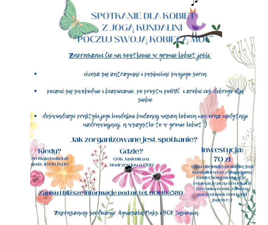 Zapraszamy na spotkanie dla kobiet z jogą kundalini "Poczuj Swoją Kobiecą Moc".
