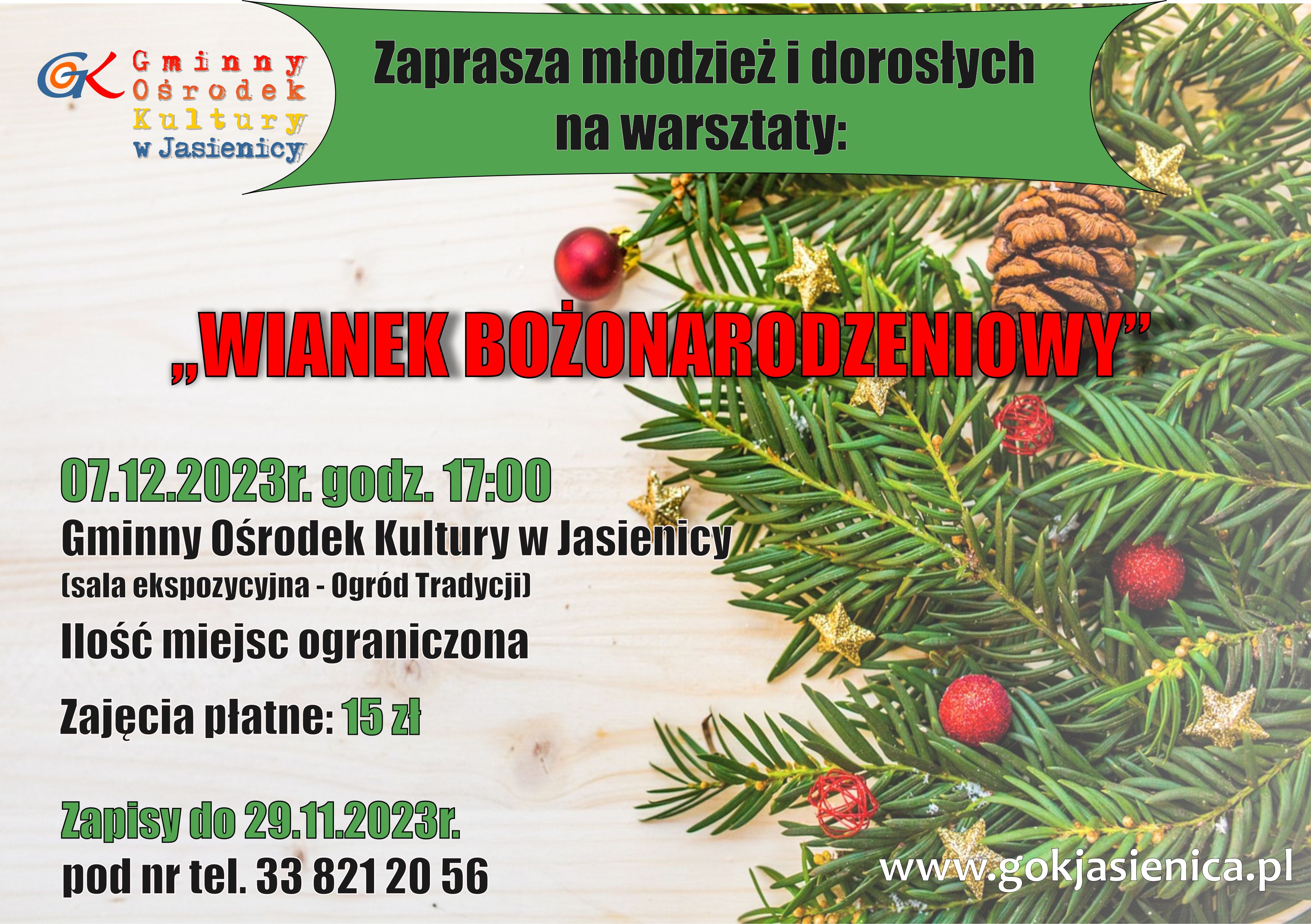 Zapraszamy młodzież i dorosłych na warsztaty "Wianek Bożonarodzeniowy 🌲
