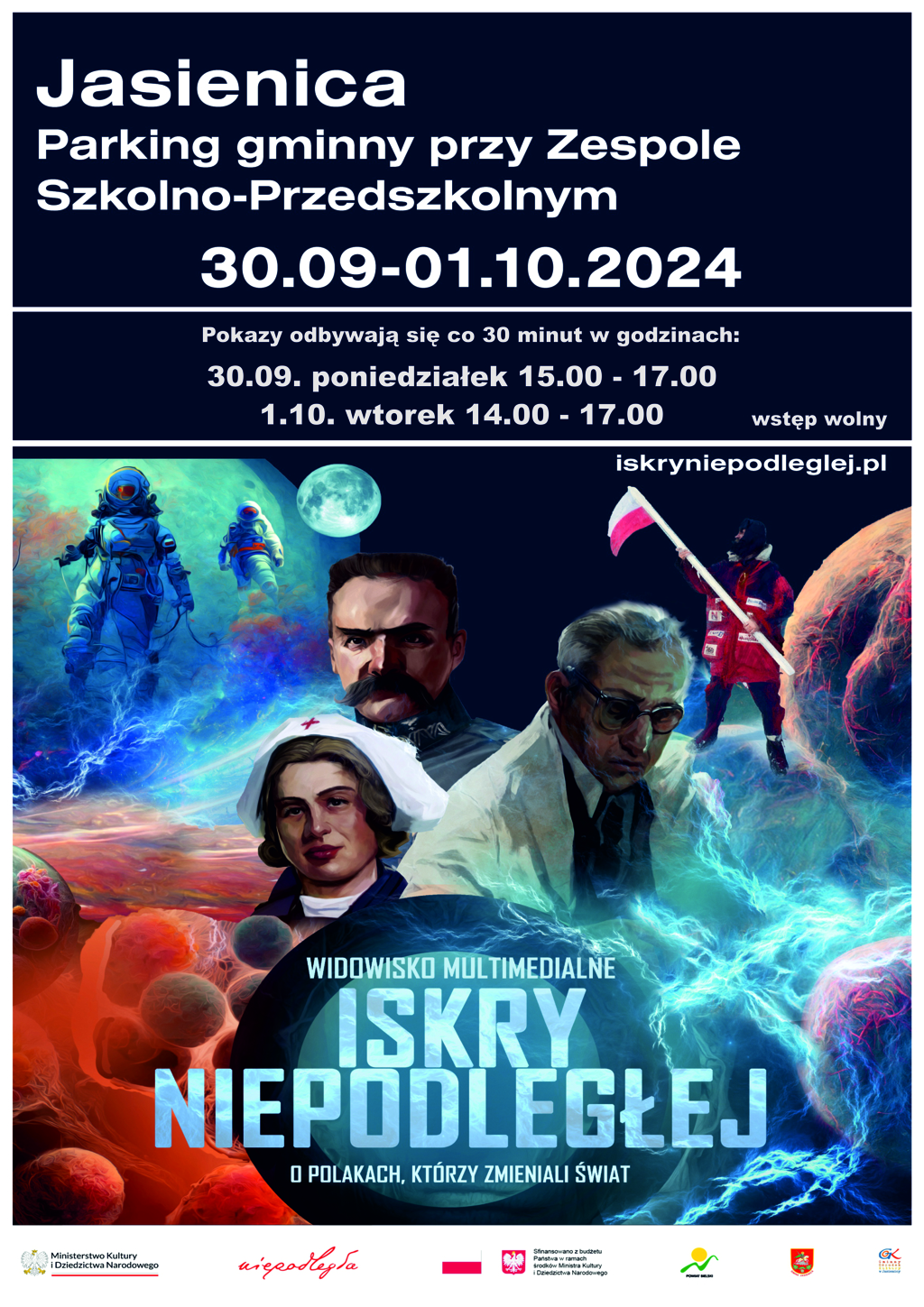 ISKRY NIEPODLEGŁEJ - to widowisko sfinansowane z budżetu Państwa w ramach środków Ministra Kultury i Dziedzictwa Narodowego - Biura „Niepodległa”, umieszczone w specjalnie zaprojektowanej naczepie ekspozycyjnej, dzięki czemu może podróżować po Polsce. Kosmiczny design, cyfrowa opowieść i elementy interaktywne.