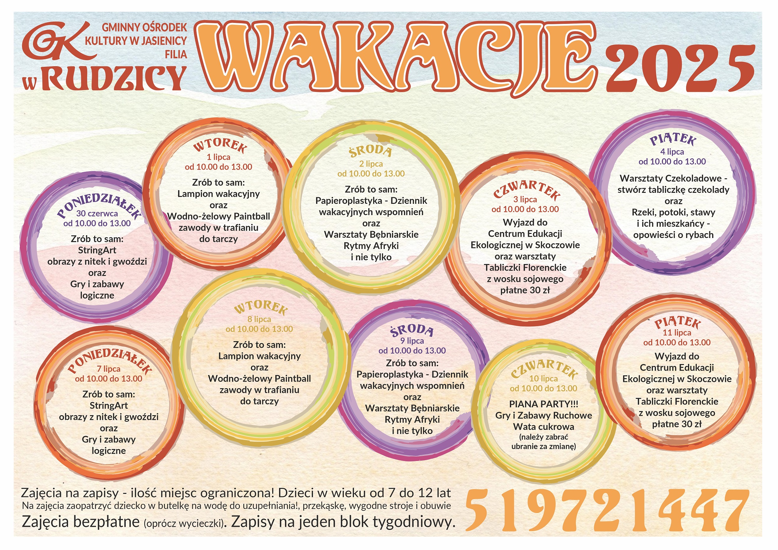 Filia GOK w Rudzicy zaprasza dzieci w wieku od 7 do 12 lat na zajęcia „WAKACJE 2025”.