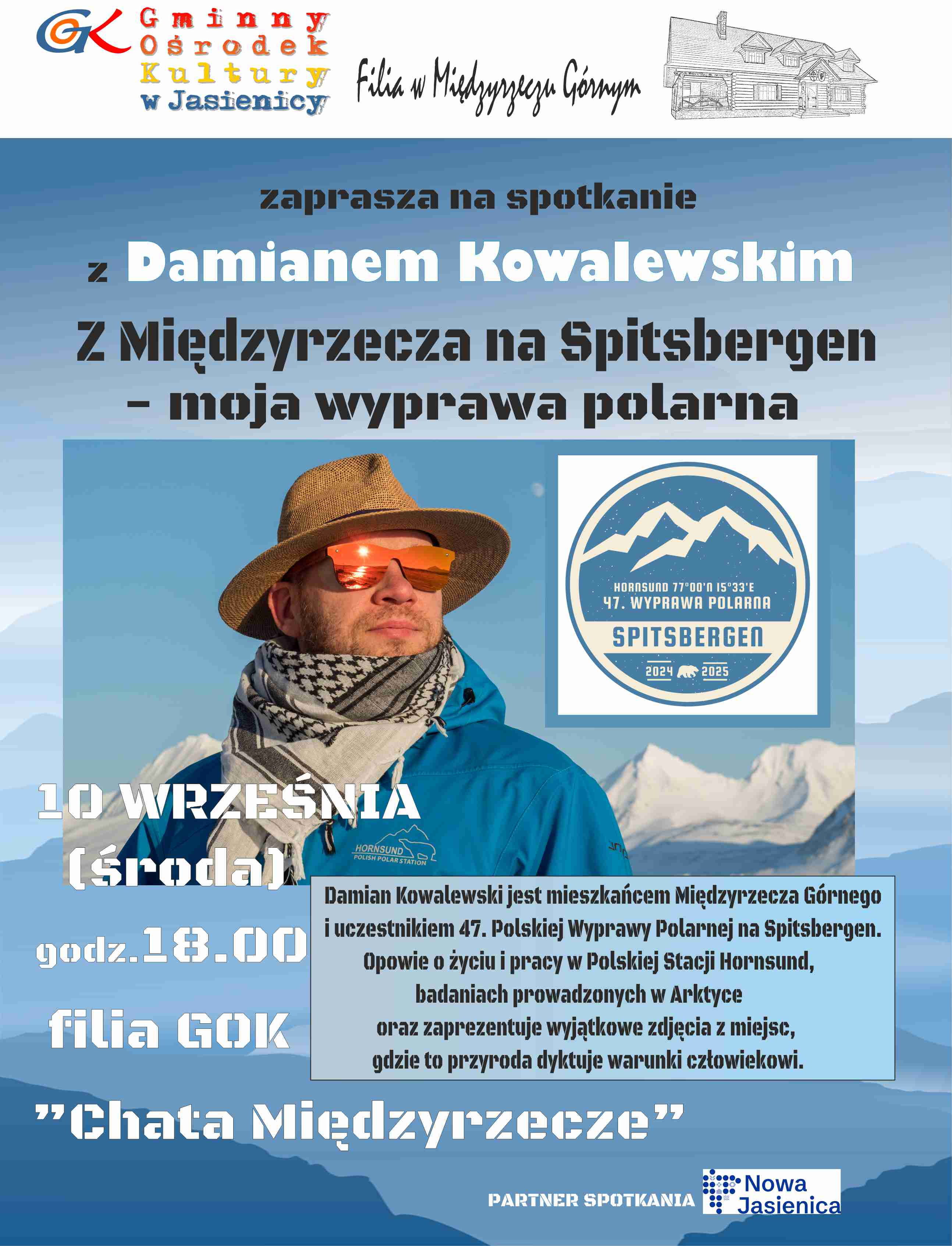 Filia GOK w Międzyrzeczu Górnym zaprasza na spotkanie podróżnicze z Damianem Kowalewskim pt. „Z Międzyrzecza na Spitsbergen – moja wyprawa polarna”.