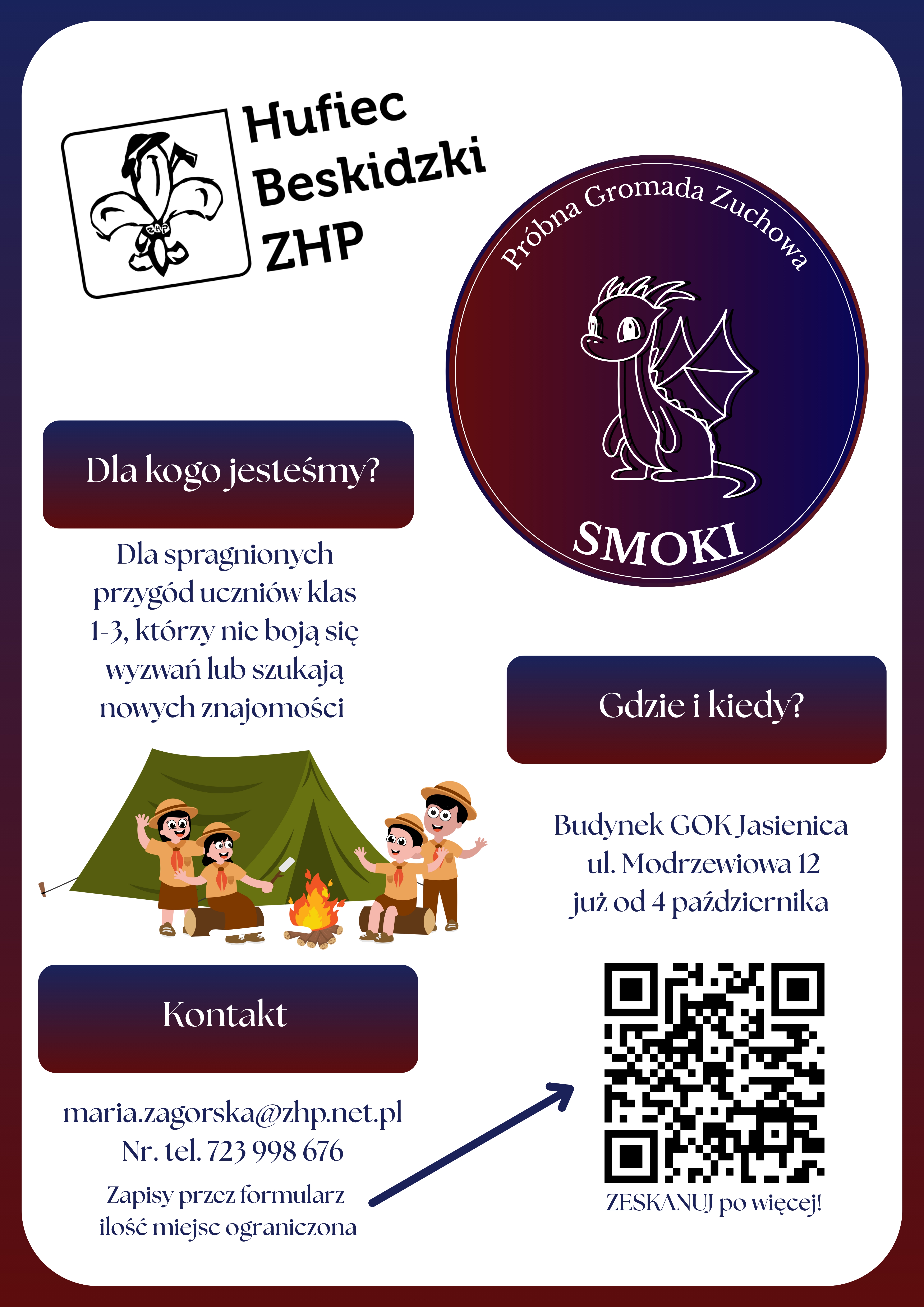 Jeśli chcieliby Państwo, aby Wasze dziecko spróbowało swoich sił w gromadzie zuchowej, prosimy o kontakt: