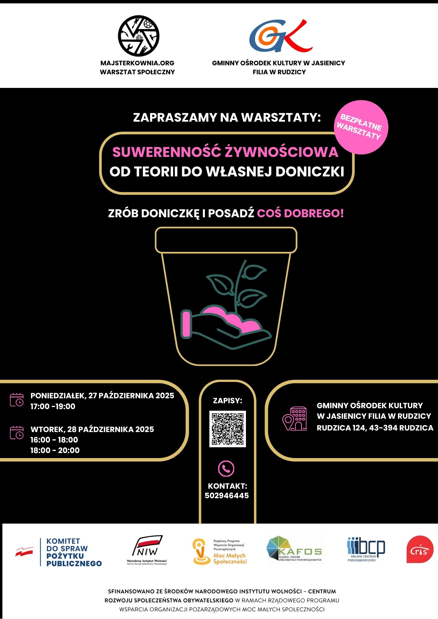 Filia GOK w Rudzicy oraz Majsterkownia.org zapraszają na bezpłatne warsztaty „Suwerenność żywnościowa – od teorii do własnej doniczki”.