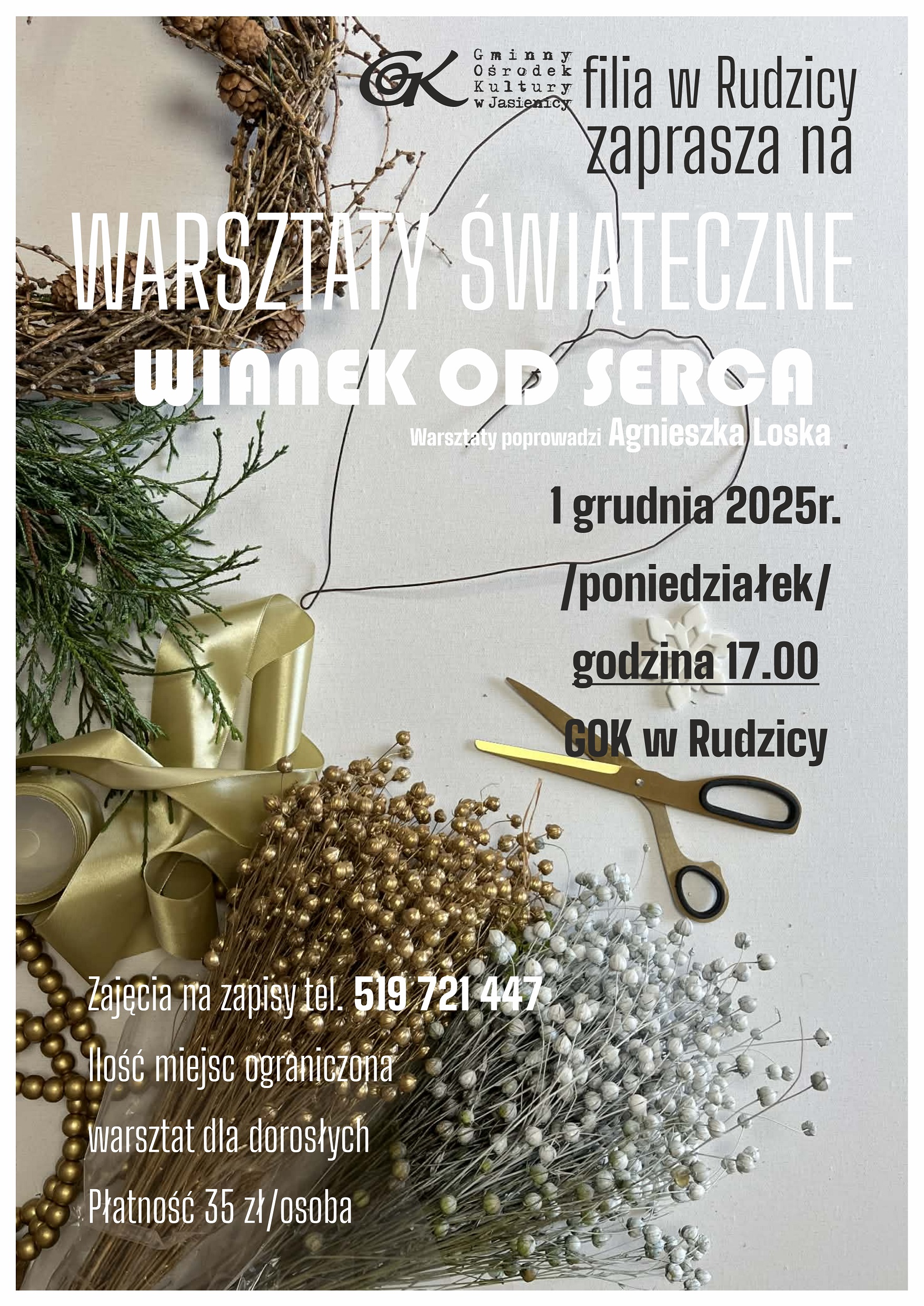 Filia Gok w Rudzicy zaprasza na warsztaty świąteczne "Wianek od serca.