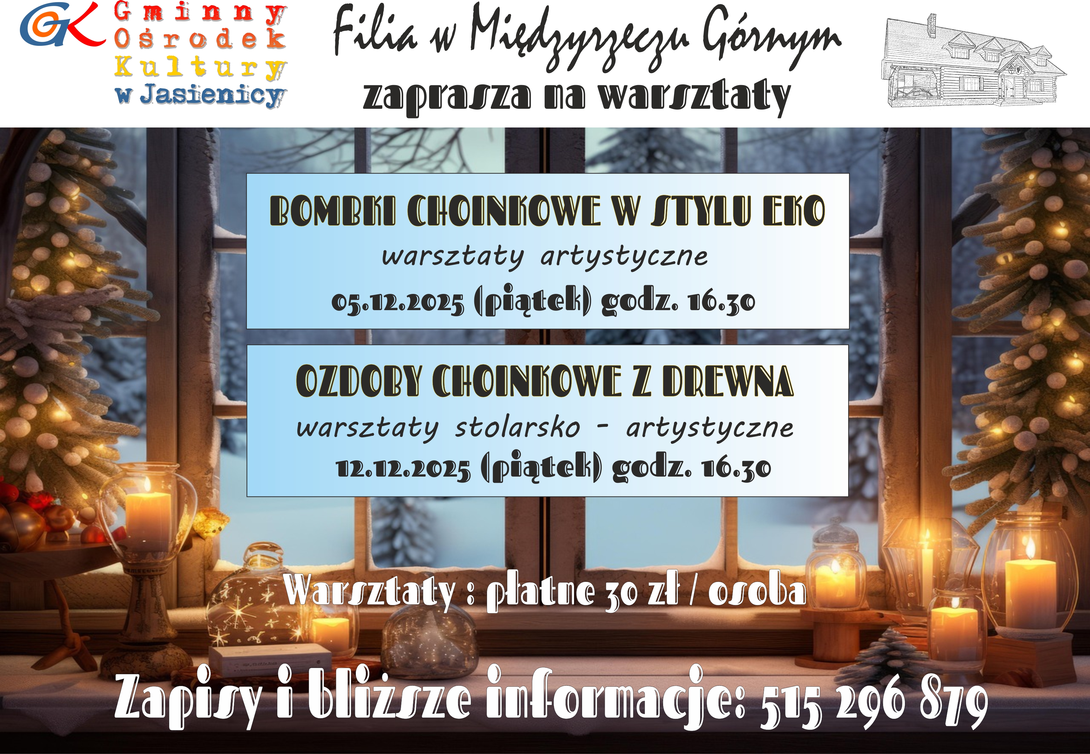 - 5 grudnia 2025 r. /piątek/, godz. 16.30 „Bombki choinkowe w stylu eko”, płatność 30 zł/osoba