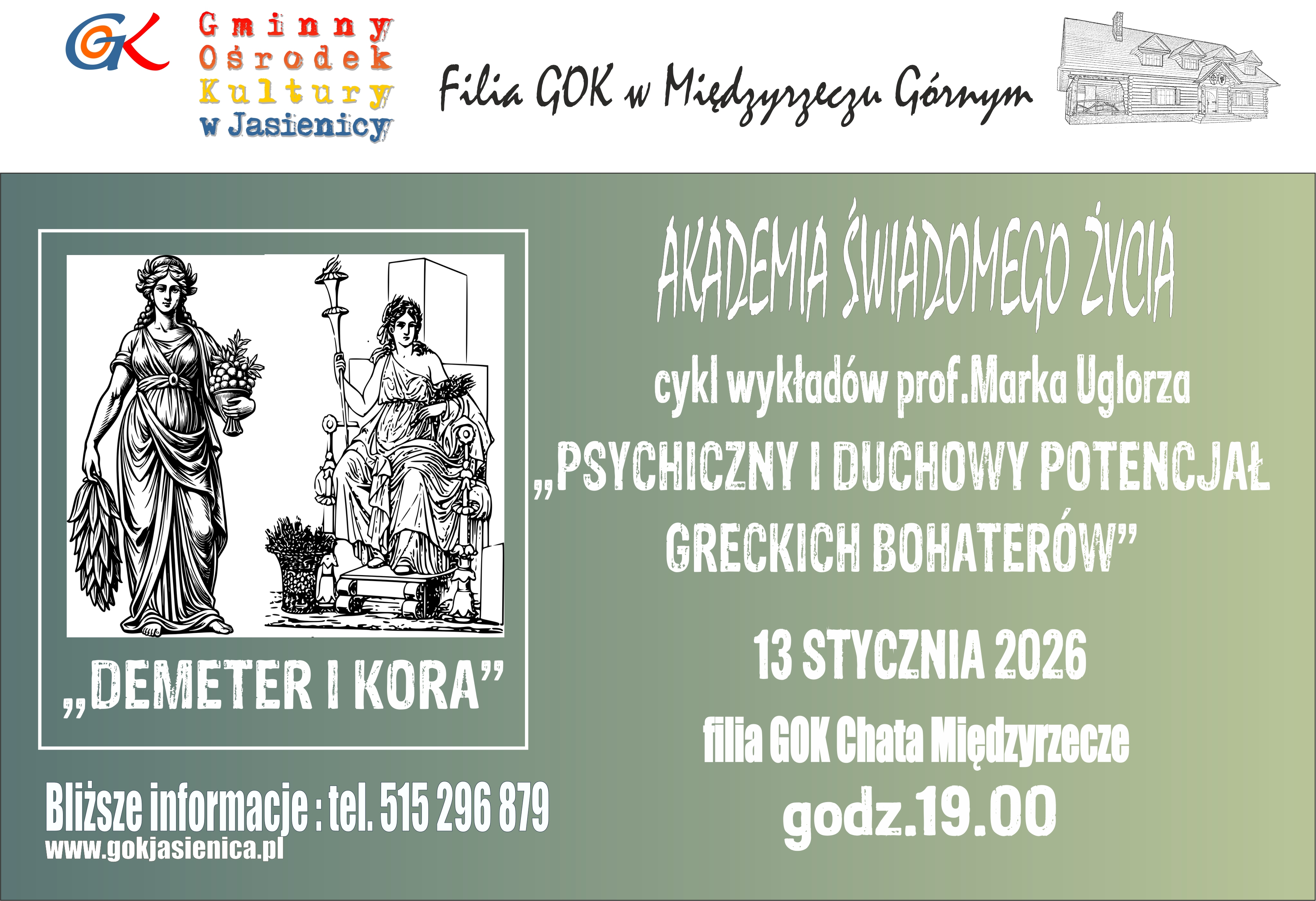 Na kolejne spotkanie z cyklu: Psychiczny i duchowy potencjał greckich bohaterów pt. "Demeter i Kora", zapraszamy 13 stycznia (wtorek) 2026 r., o godz. 19.00 do Chaty Międzyrzecze.