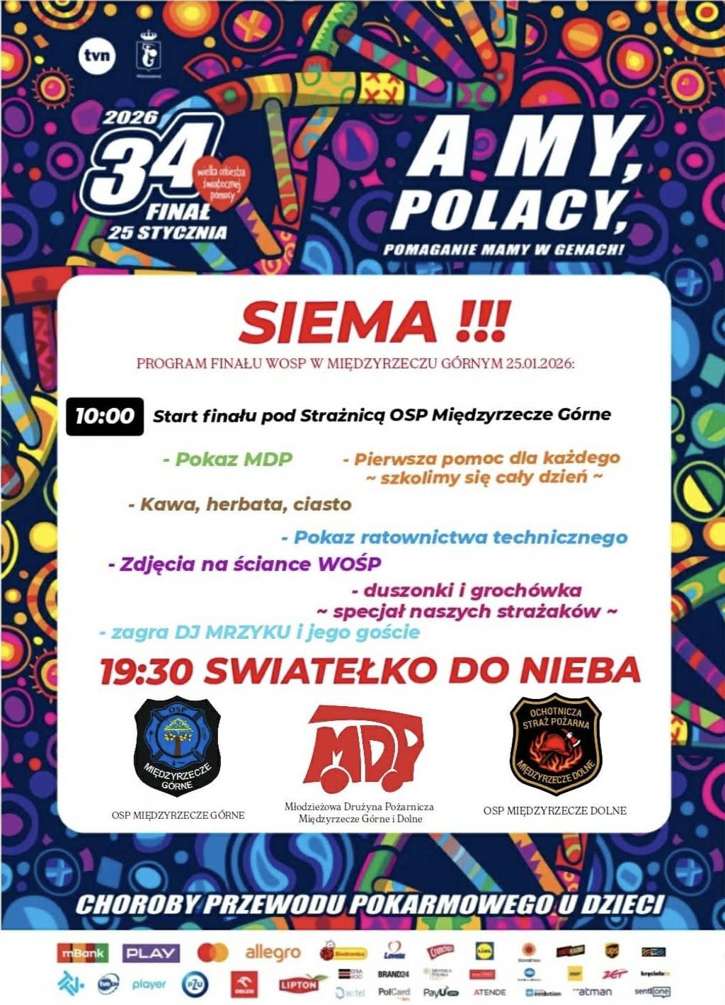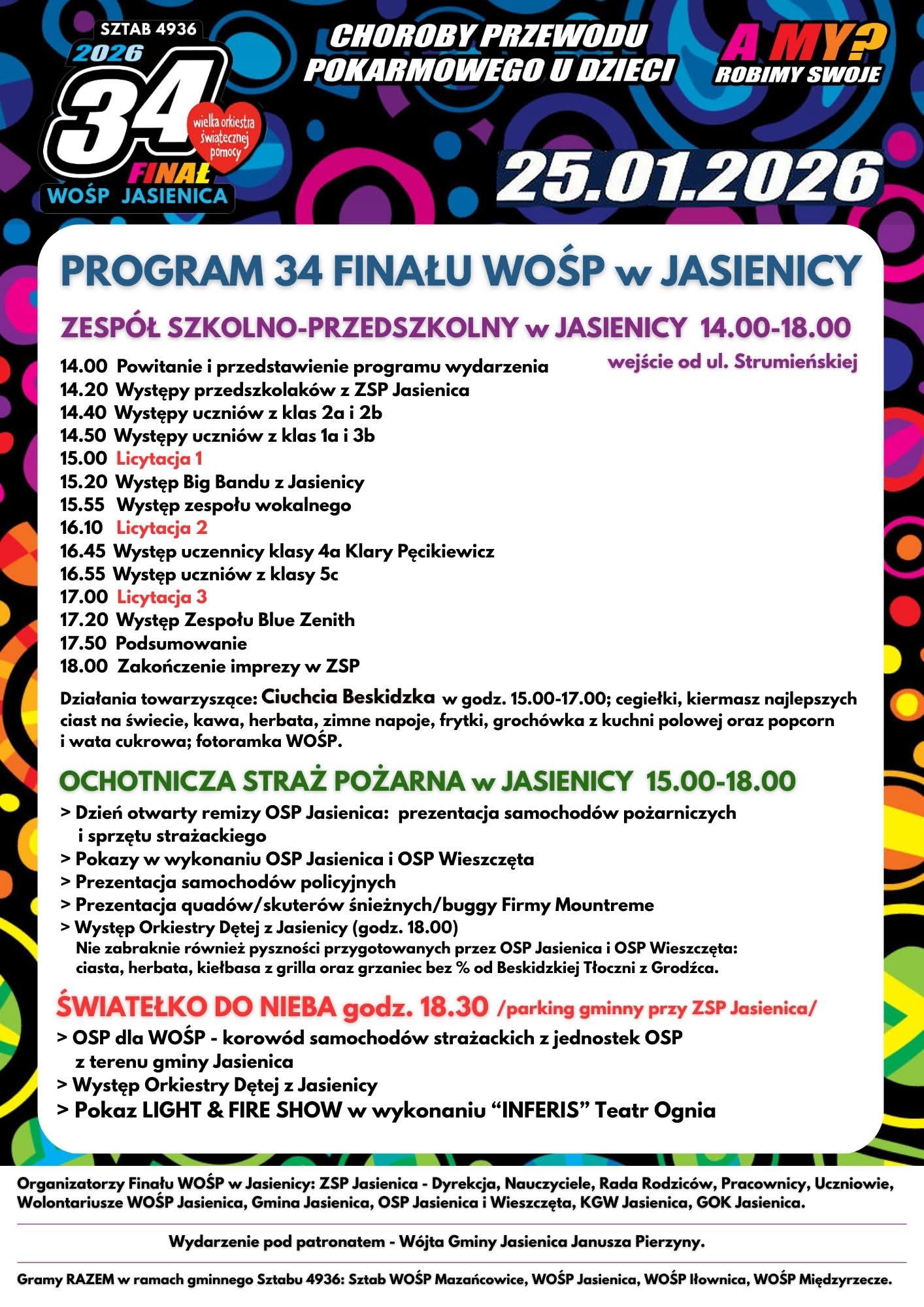 Serdecznie zapraszamy do wzięcia udziału i wsparcia 34. Finału Wielkiej Orkiestry Świątecznej Pomocy, który odbędzie się 25 stycznia 2026 r.