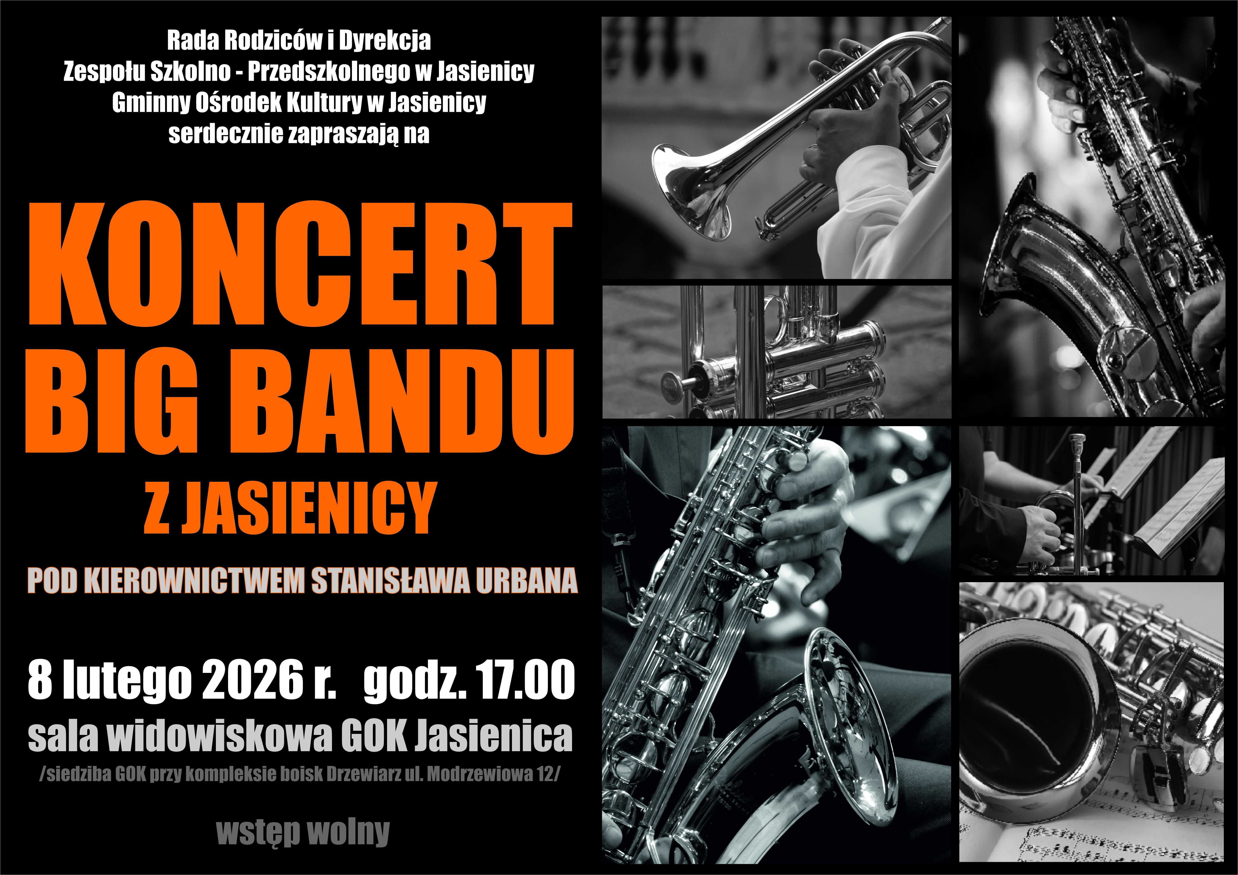 W niedzielę 8 lutego 2026 r. o godz. 17.00 zapraszamy na koncert Big Bandu pod kierownictwem Stanisława Urbana.
