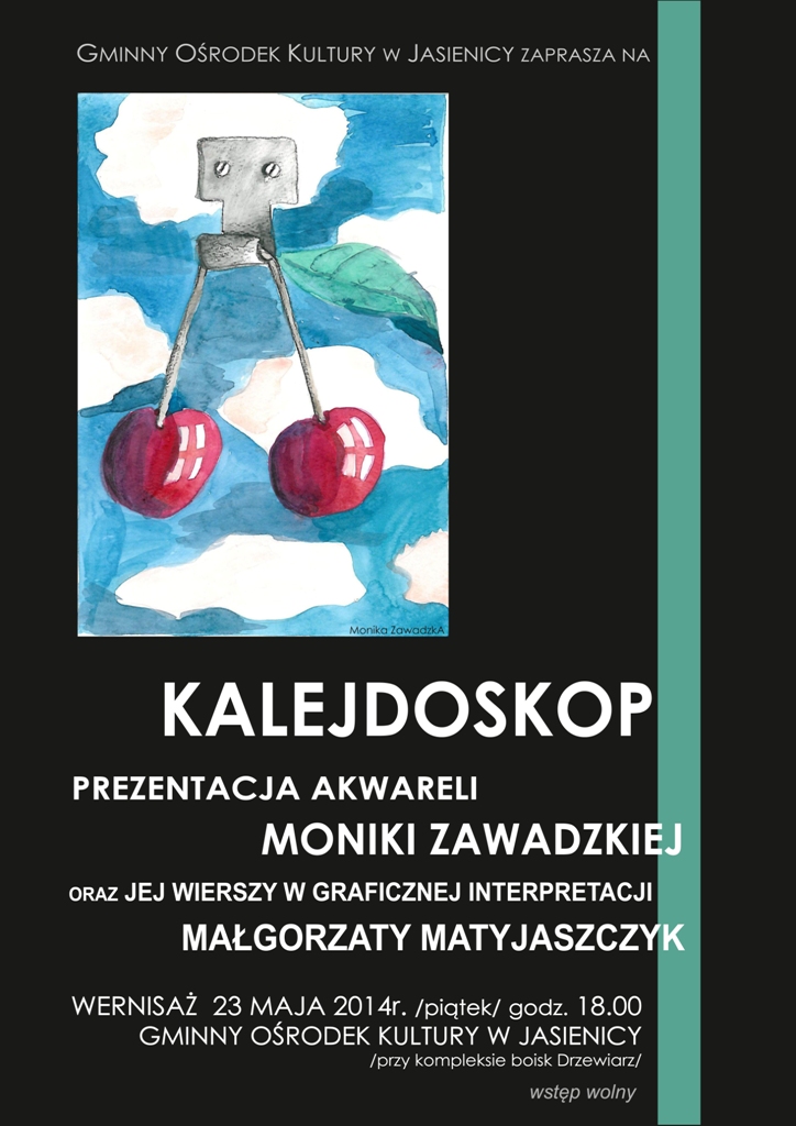 Wernisaż odbędzie się 23 maja 2014 r. ( piątek ) o godz. 18.00 w galerii Gminnego Ośrodka Kultury w Jasienicy ( przy kompleksie boisk "Drzewiarz" ).