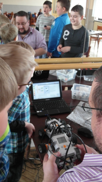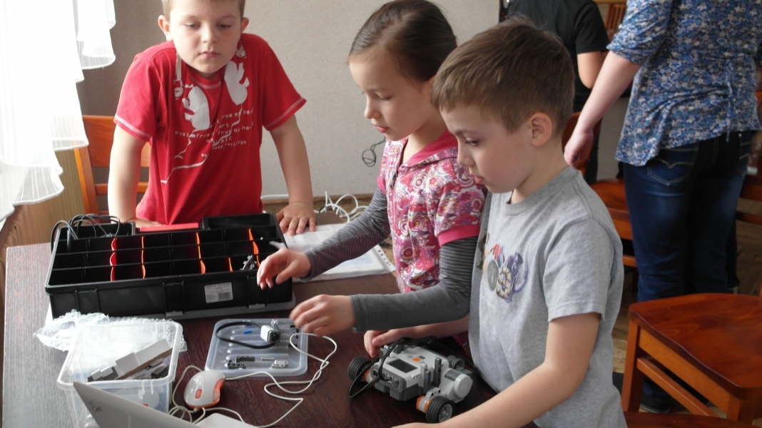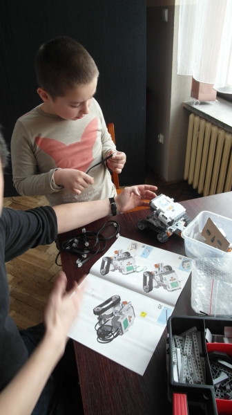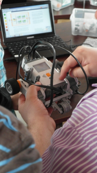 Wykorzystując zestawy konstrukcyjne LEGO MINDSTORMS, zawierające mikrokomputer, precyzyjne silniki oraz różne typy sensorów, uczestnicy warsztatów skonstruowali i przetestowali swoje roboty.
