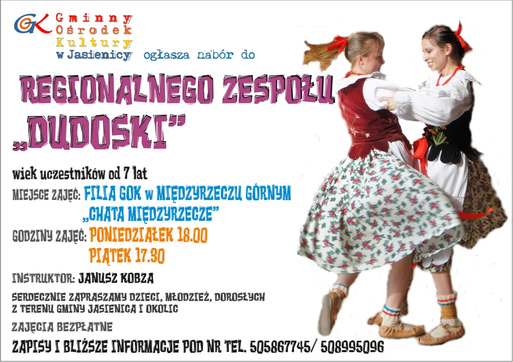 Gminny Ośrodek Kultury w Jasienicy ogłasza nabór do Regionalnego Zespołu "Dudoski".