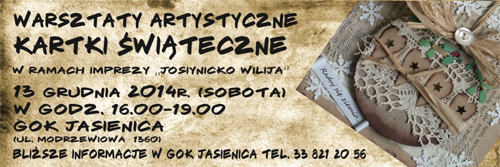 Impreza odbędzie się 13 grudnia 2014 r. w GOK Jasienica (siedziba GOK przy boiskach "Drzewiarz", ul.Modrzewiowa 1360) w godz. od 16.00 do 19.00.